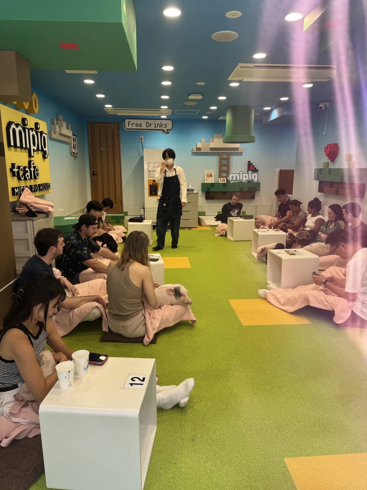 flipo, pero flipo, una cafetería para cerdos, pero no cerdos las personas que son asquerosas, cerdos los animales, flipando, la gente dentro acariciando a su cerdo, dándoles café o lo que sea, madre mía hay gente para todo, había locales y extranjeros que supongo que vivirán por aquí si tienen un cerdo como mascota, o igual se lo traen de vacaciones, cómo se facturará?