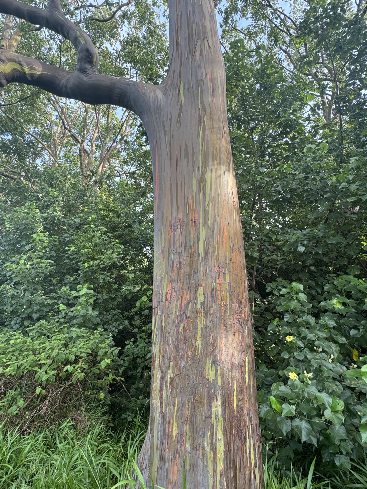 madre mía, llego completamente empapado al coche, qué calor y humedad. Segunda parada un pequeño puesto de comida y bebida llamada Huelo. Tercera parada los árboles de eucalipto, curiosos, están como pintados de varios colores de manera natural, pero hay que tener cuidado porque no hay parking y como te saltes el único o dos trocitos que hay para dejar el coche, ya te toca hacerlo a la vuelta si es que puedes parar.