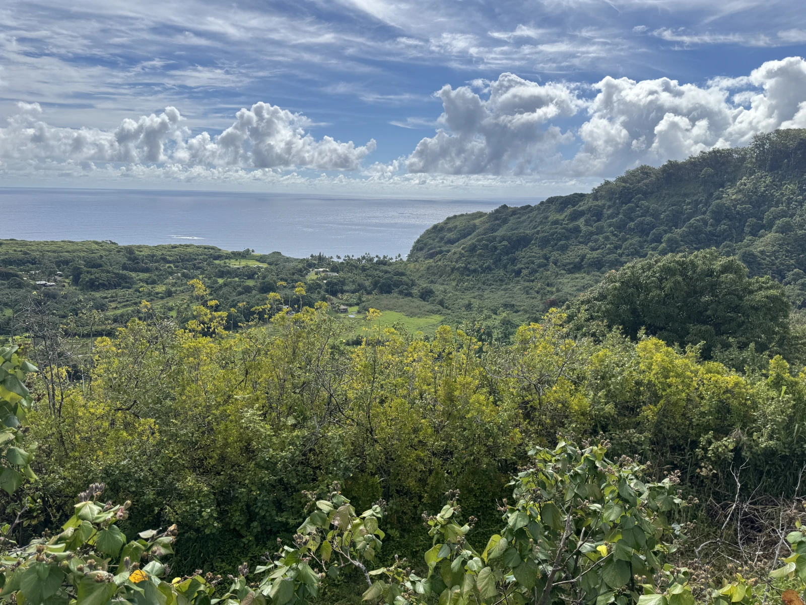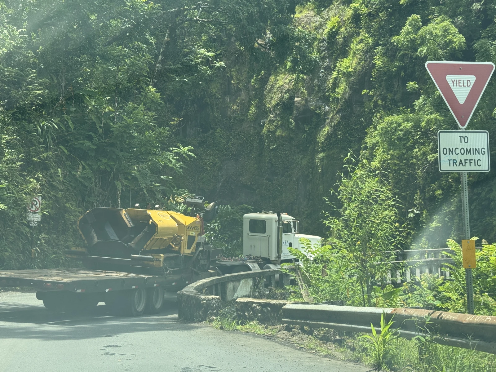 y madre mía la que se lió, un camión con un pequeño tráiler se quedó atascado en un puente y yo era el primero detrás de él, estuvimos como media hora y cada vez más pitadas de coches en ambos sentidos, la que se estaba liando, al final vino otro hombre y le ayudó a sacarlo marcha atrás pero moviendo toda mi fila para atrás bastantes metros, increíble la que se lió y ni imaginarme si esto pasa más a menudo, que si, carretera muy bonita, icónica por el paisaje y las vistas, pero si vives en cualquier casita que se ve por ahí perdida o en Hana, menudo infierno.