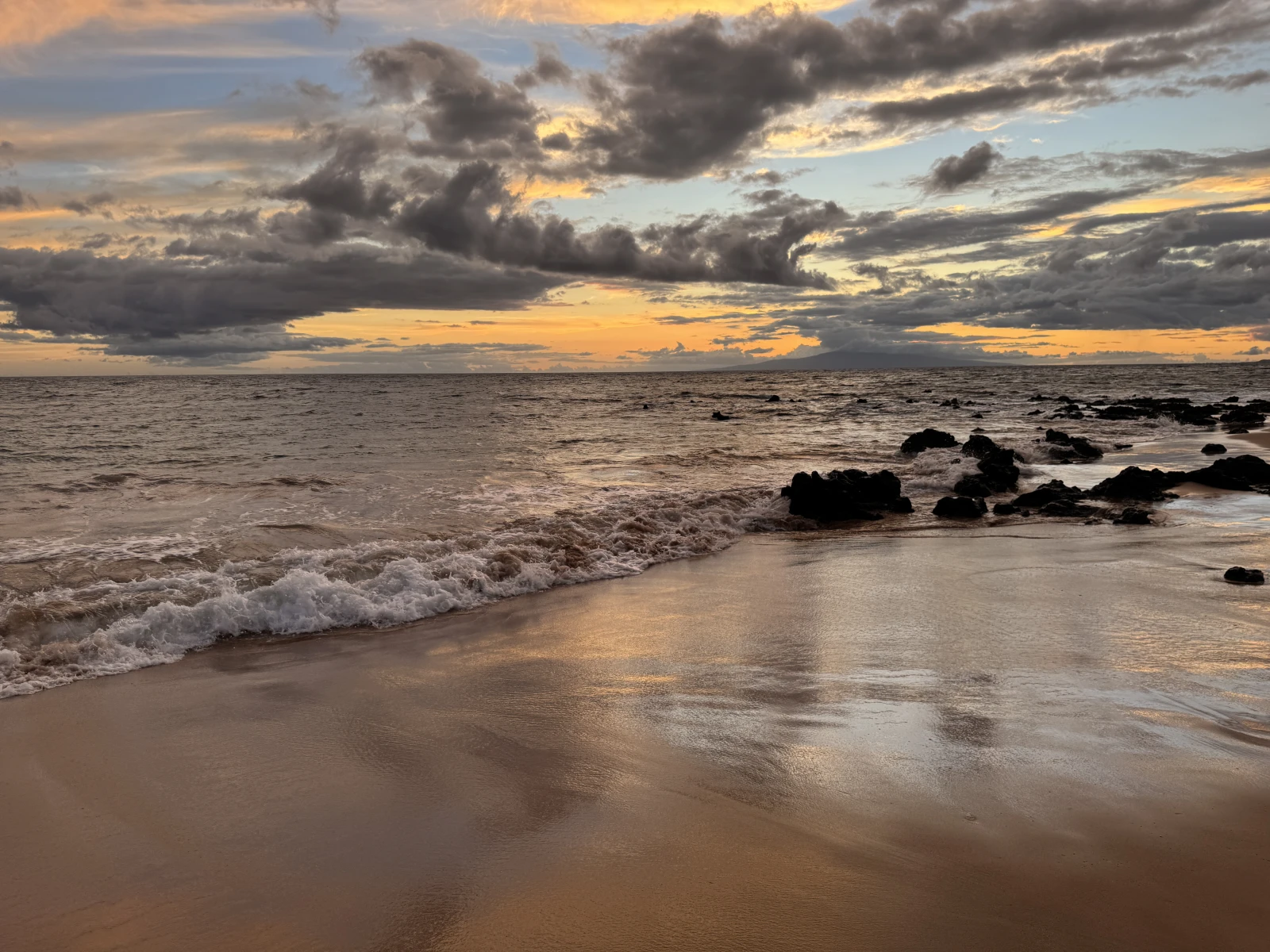Ya en Kihei, hago checkin, bañito en la playa que la tengo enfrente y mi primer atardecer en Hawaii, chulo