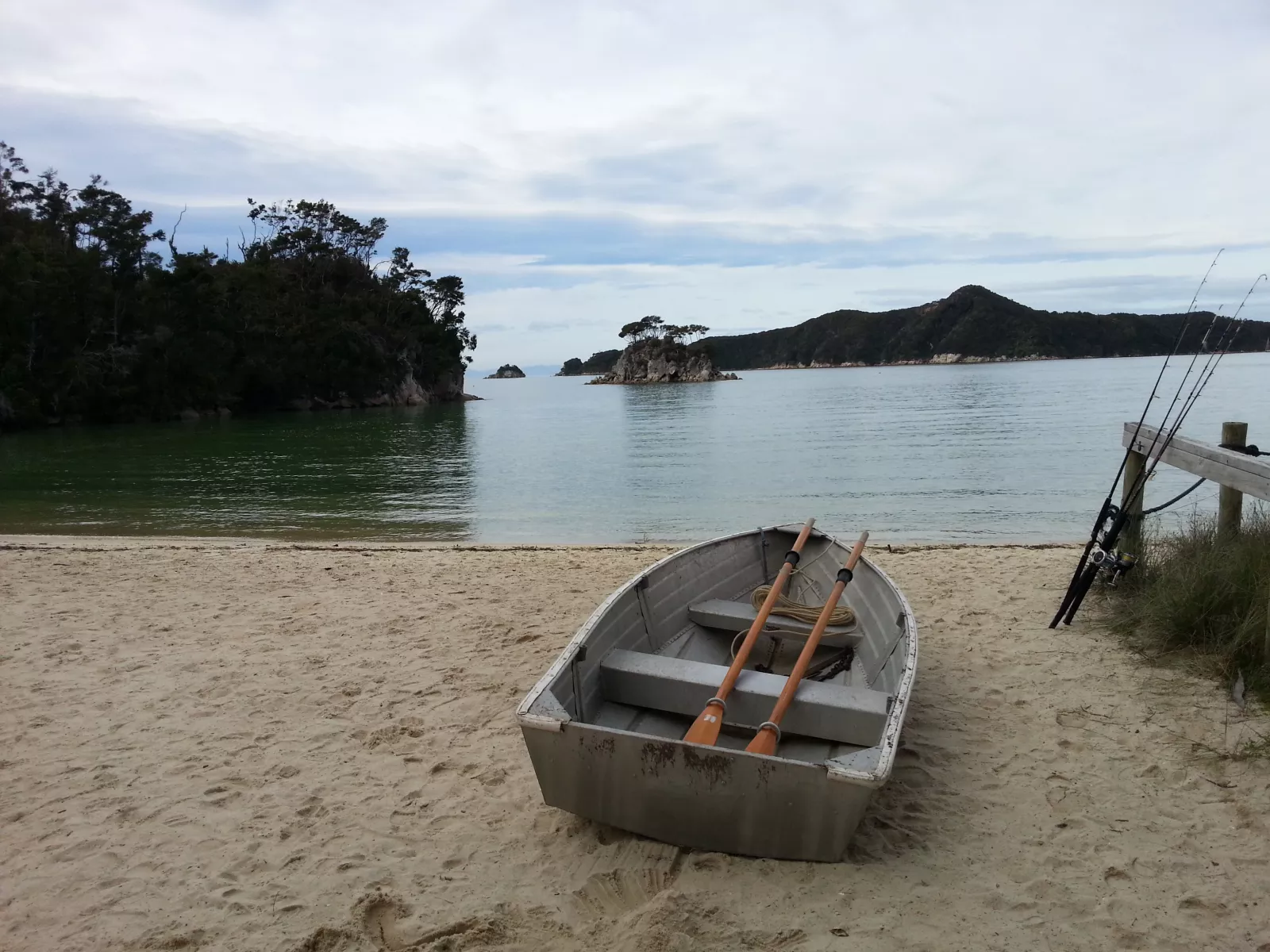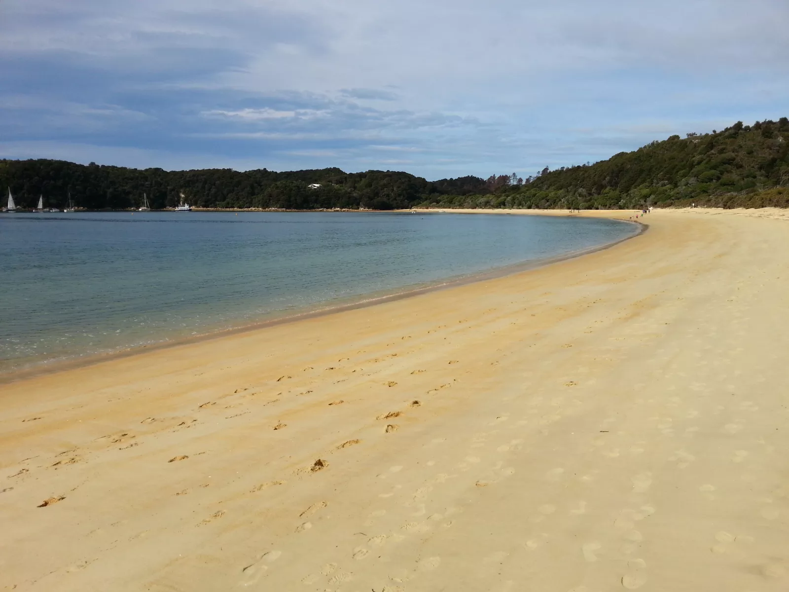 después de algo menos de una hora de barca, llego al pueblo Kaiteriteri, vaya nombrecito, donde me espera un autobús para ir a mi casa, Nelson, en otras dos horitas.
