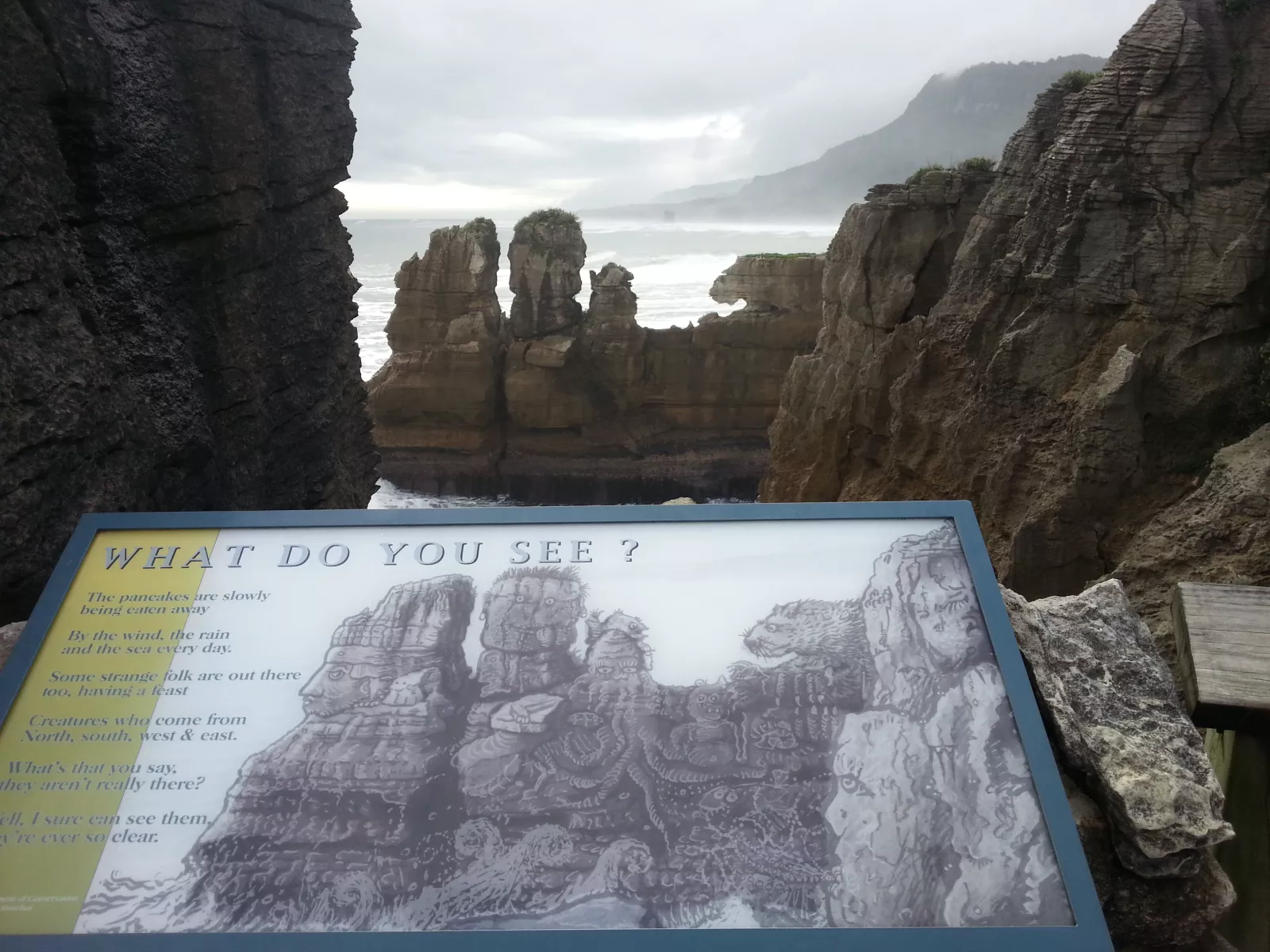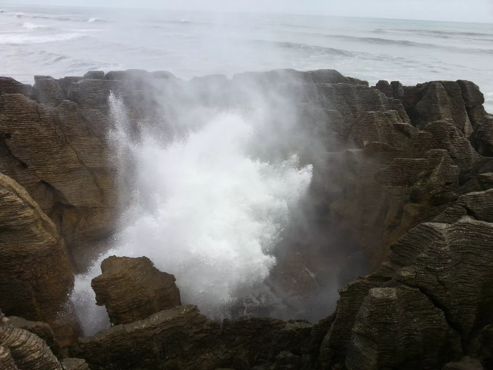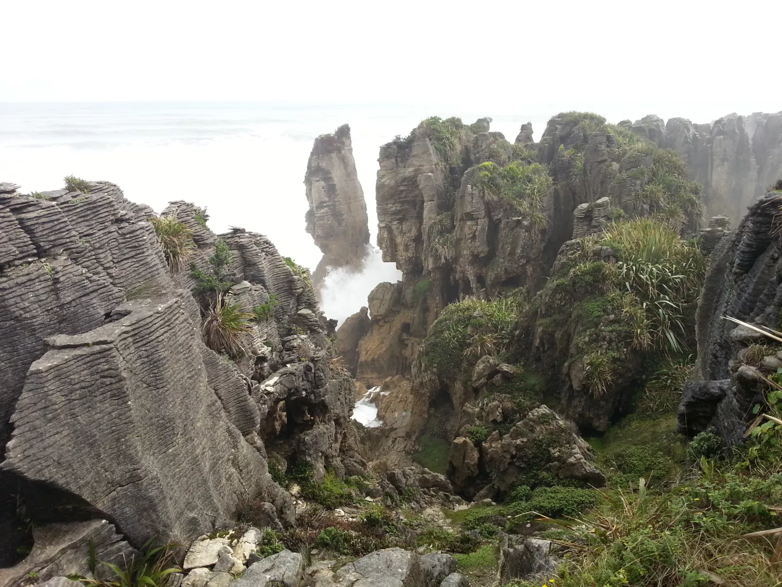 Punakaiki Rocks y Block Hole, se llama la historia esta, son como unos monolitos y rocas con formas extrañas debido a la erosión del agua, erosión... yo qué sé, que se estrella el mar con una fuerza brutal