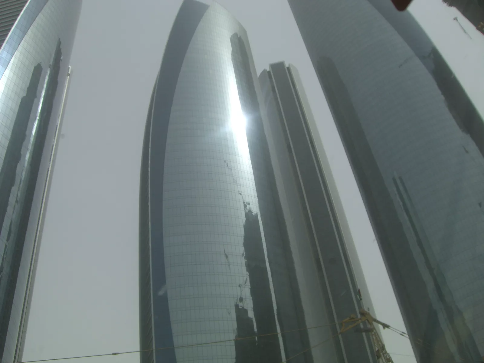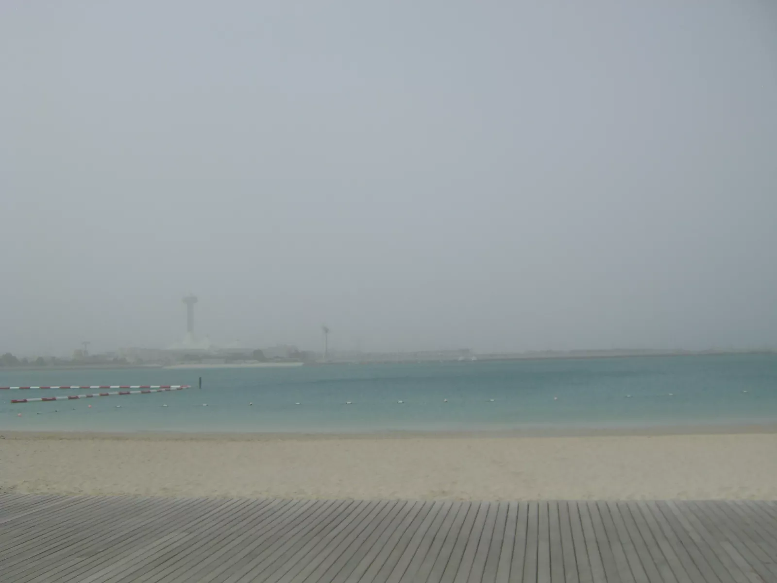 pasada 1 horita y unos 100 kms después, porque hay radares…veo un cartel que pone circuito de Yas Marina y digo, joder, el de la F1, ni lo sabía, voy a parar a verlo y aprovecho para enviar una postal a mi sobri Sergio que le gusta tanto como a mí. Bueno, pillo el desvío y como siempre, aparecen dos nuevos desvíos y en ninguno pone circuito, Yas Marina West y Yas Marina Oest, esto… cual pillo? pues nada, a la izquierda y qué pasa? nada más cogerlo veo en el desvío de la derecha un cartel que dice: circuito F1, ya es tarde, que puta mala suerte, a ver dónde va esto… intento dar la vuelta pero es imposible, kms y kms y ningún cambio de sentido y avanzas que no sabes ni donde estás y aquí fue la primera vez que sentí un poco de miedo, la tormenta era bestial y hubo momentos de no ver nada, cero, imposible y sin coches en ningún sentido, qué raro… soy el único conductor del país? yo, solo, en medio de no sé dónde, bueno, sí, del desierto sin ver nada, agarré fuerte el volante y hacer más kms. Pasada media hora, veo un cartel que pone abu dhabi y me entró una respiración de… salvado