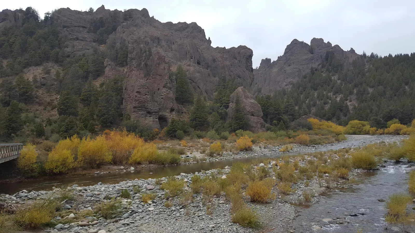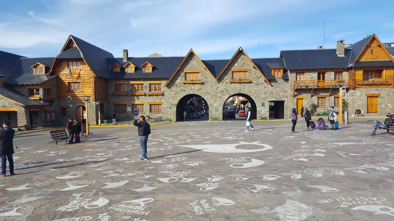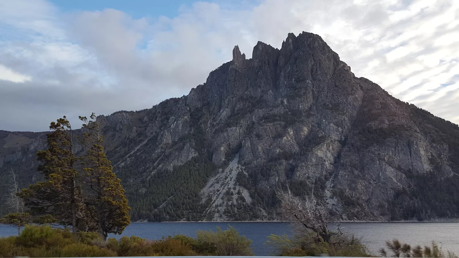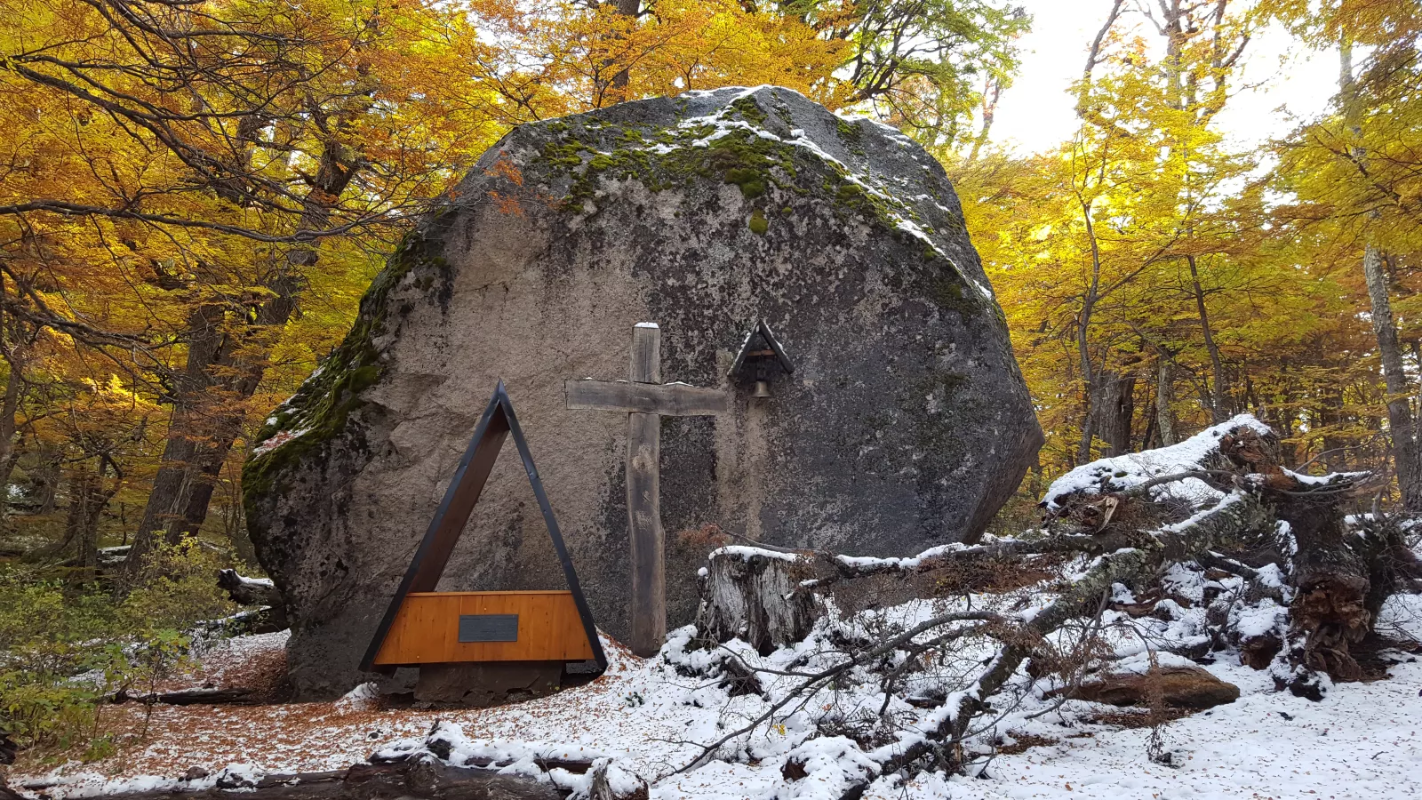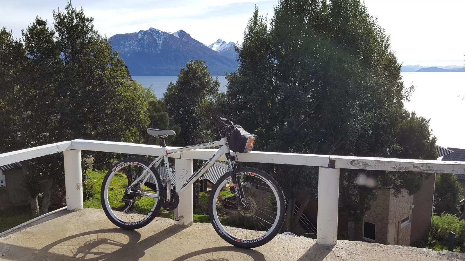 y llego hasta un pueblo así muy mono, Villa La Angostura, casitas de madera monísimas, todo verde, el lago, montañas nevadas, hermoso, pero ni una foto, eso sí, de la roca, sí