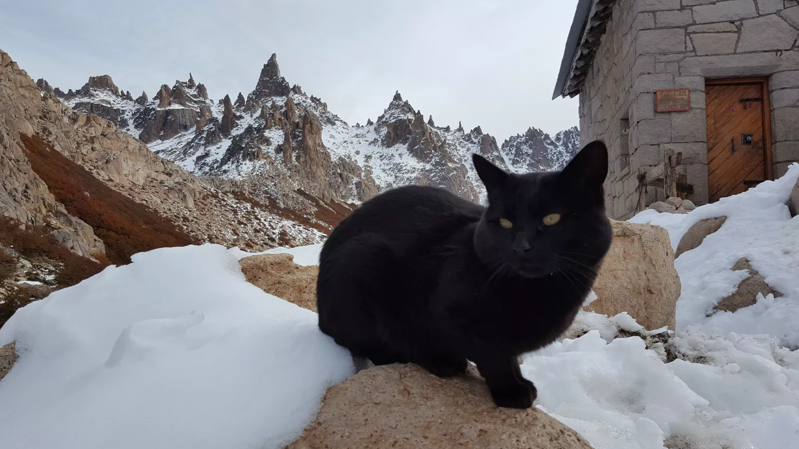 Rodeado de montañas nevadas, todo súper bonito, mereció la pena, un rato de relax y de disfrute, 10 min, no tengo más tiempo y además estoy congelado, hay un cartel que dice que el refugio está a 4700 metros, tela, pa venir sin abrigo, es ideal