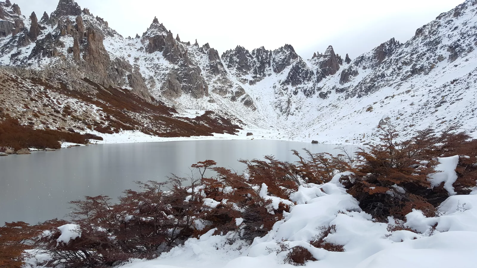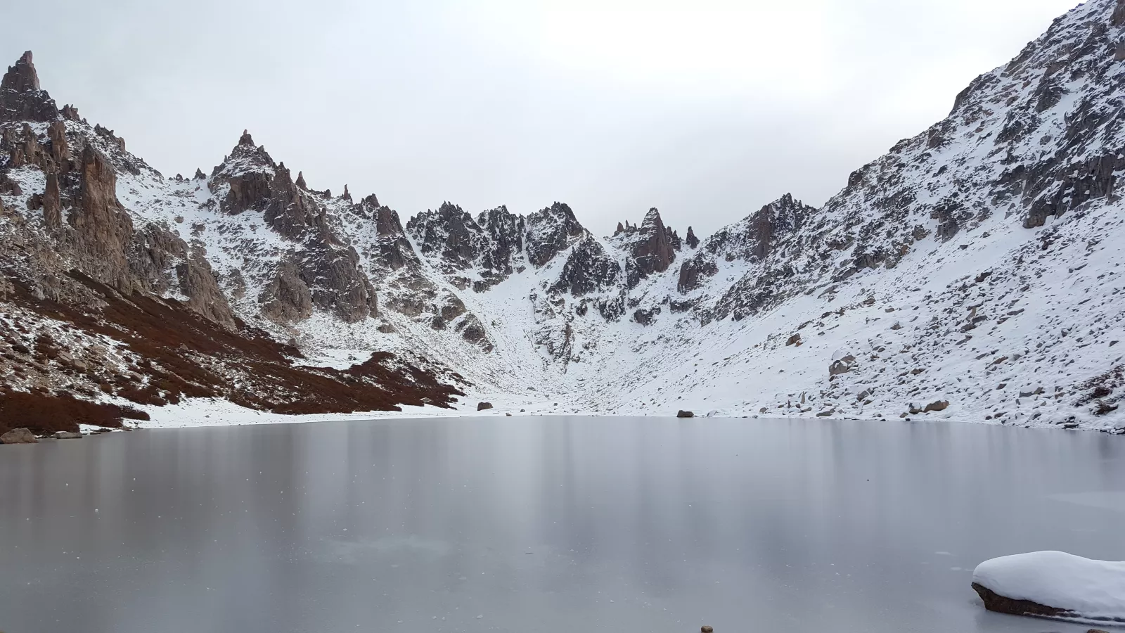 ya estamos en el final del treking, por fin, pero después de tanto esfuerzo, por eso la recompensa sabe mejor, justo detrás un hermosísimo lago congelado