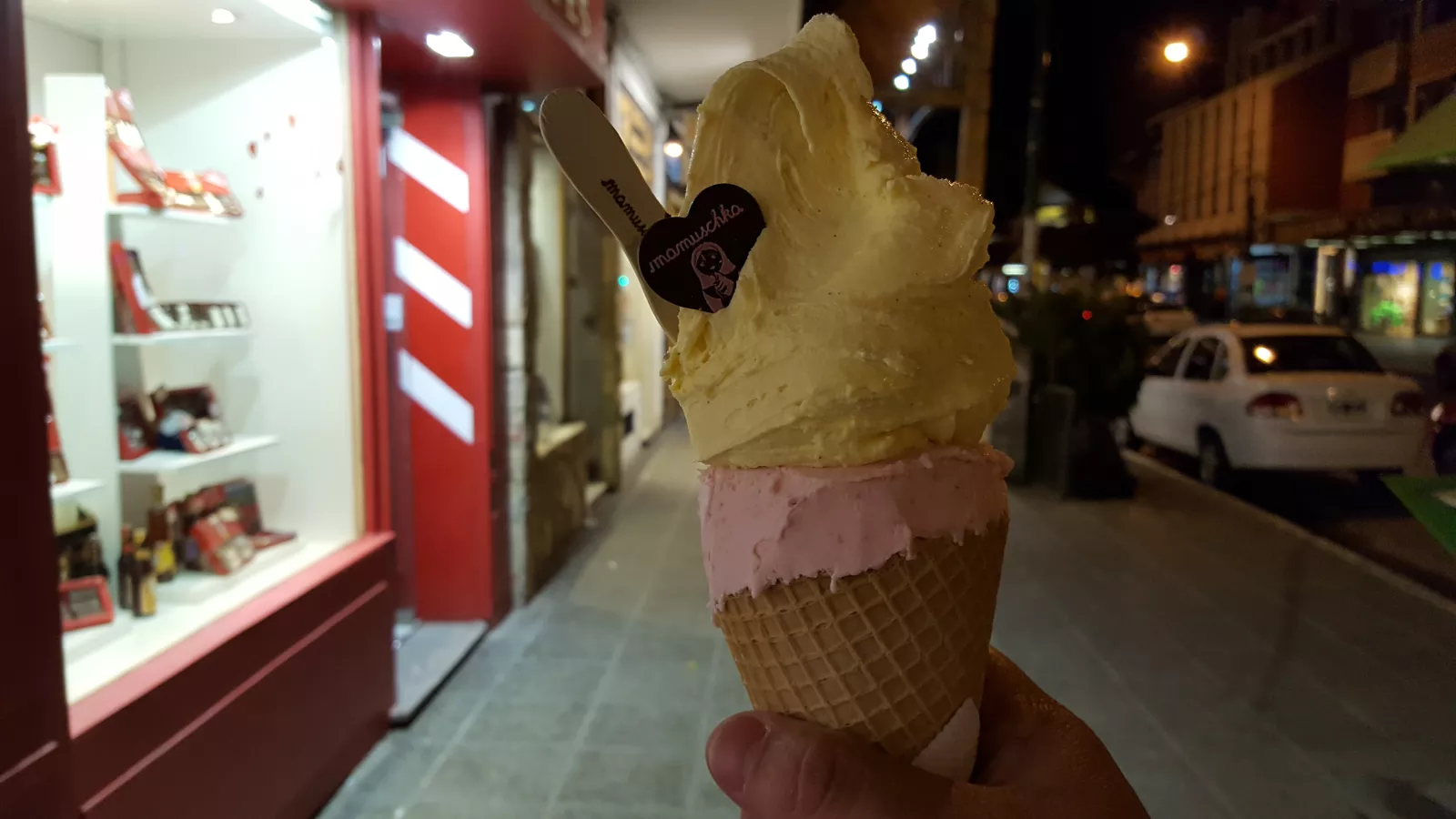 Ducha y quiero morir, pero no puedo no, el cuerpo me pide marcha así que me voy al súper y me compro 2 yogures, que nooooo, entro en el primer restaurante que veo y me como un filetón pero con ansia, sin saborear, sin masticar… así, en 3 minutos y la fanta, de 2 tragos, pero el homenaje no acaba aquí, a la que salgo, a pesar de estar congelado, a pesar de estar bajo cero, me he comprado un helado gigante, rico no es la palabra, madre mía, podría alimentarme toda la vida de helados.