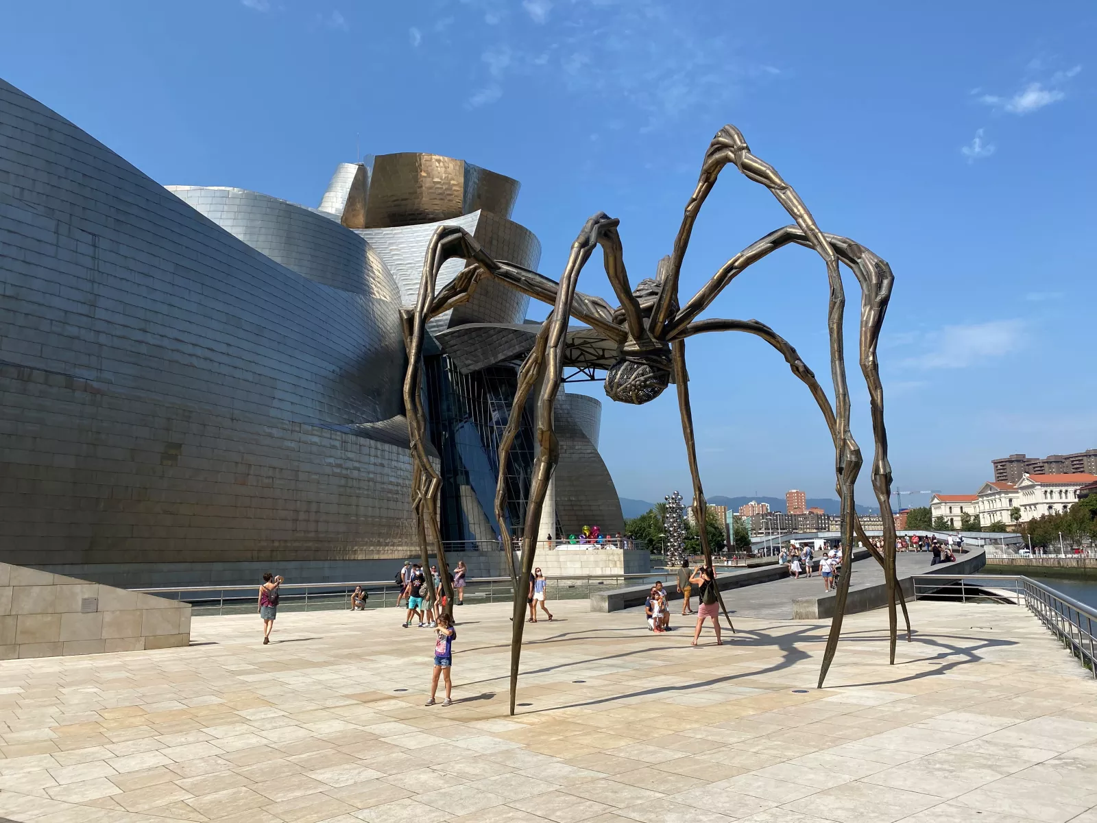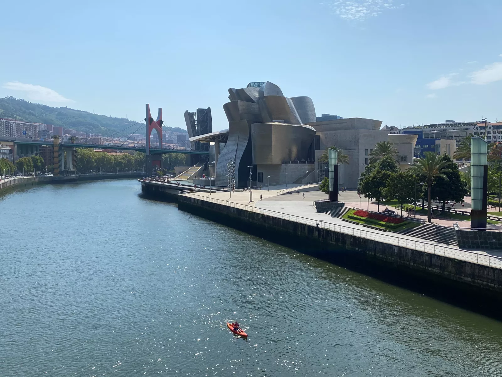deja coche en parking, y pateamos por la ría, cruza puente pa un lao, pa otro, todo muy bonito y llegamos al museo gugenhein o como se escriba, bonito y raro por fuera, por dentro ni idea, no quería entrar con lo fresquito que estaríamos…