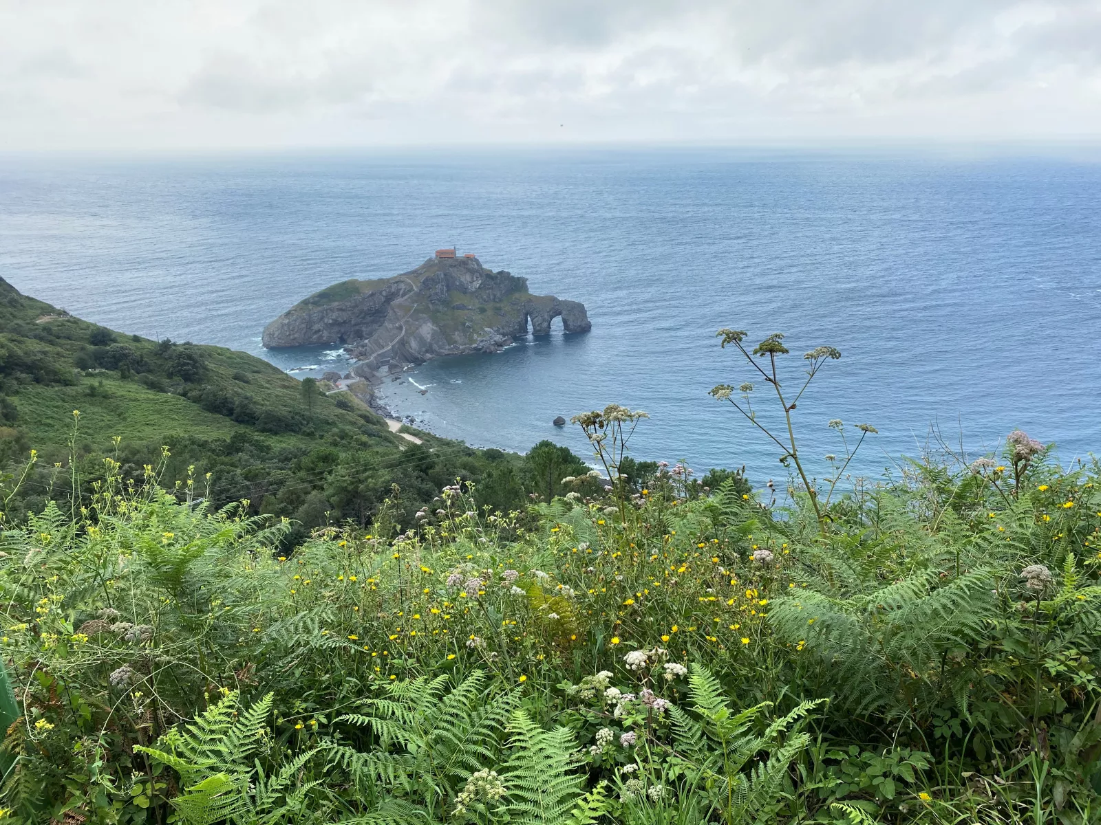 y a eso de las 15, ya se quería ir, si no llevamos ni 3 horas por aquí, madre mía, así que la quiero sorprender con una escapadita romántica a San Juan de Gaztelugatxe, copiado el nombre tal cual de google… 45 min de coche, con mini siesta de ella incluida y ya estábamos allí, a 48º y como no, que para poder llegar a la ermita, hay que comprar entrada, ok, vamos y nos dices que enseñemos la reserva, ehhh qué reserva? no tenéis reserva? pues no, ni lo sabíamos, ahhh pues entonces no podéis pasar, hay reserva de semanas e incluso meses, no me digas, pero si vengo en plan romántico con una filipina que nunca más voy a volver aquí y menos con una tía, venga, déjenos pasar, que no y que no, pues nada, a dar un paseo por lo alto de la montaña y ver este lugar tan chulo
