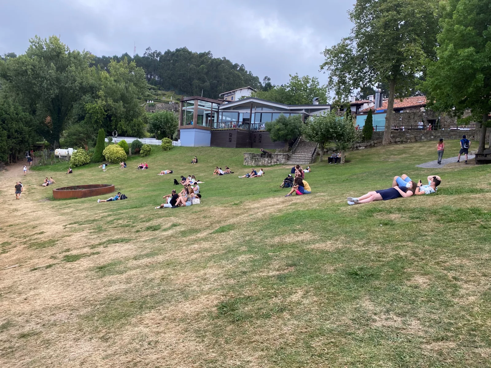 menos mal que hay como un restaurante con una explanada gigante para tomar en este orden, café, fanta y helado mientras me tumbo y duermo lo que esta tía ha dormido en el coche, ahora es mi momento y me pienso poner a su altura, se acabaron las tonterías