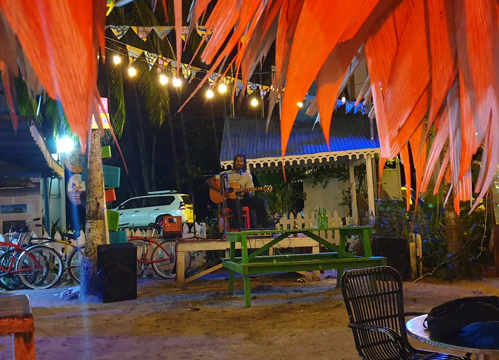 Luego hemos dado una vuelta por el pueblo y finalmente hemos acabado viendo un concierto en directo de música de aquí, ritmos caribeños, mezcla de reggae con yo qué sé, así que, genial, noche genial