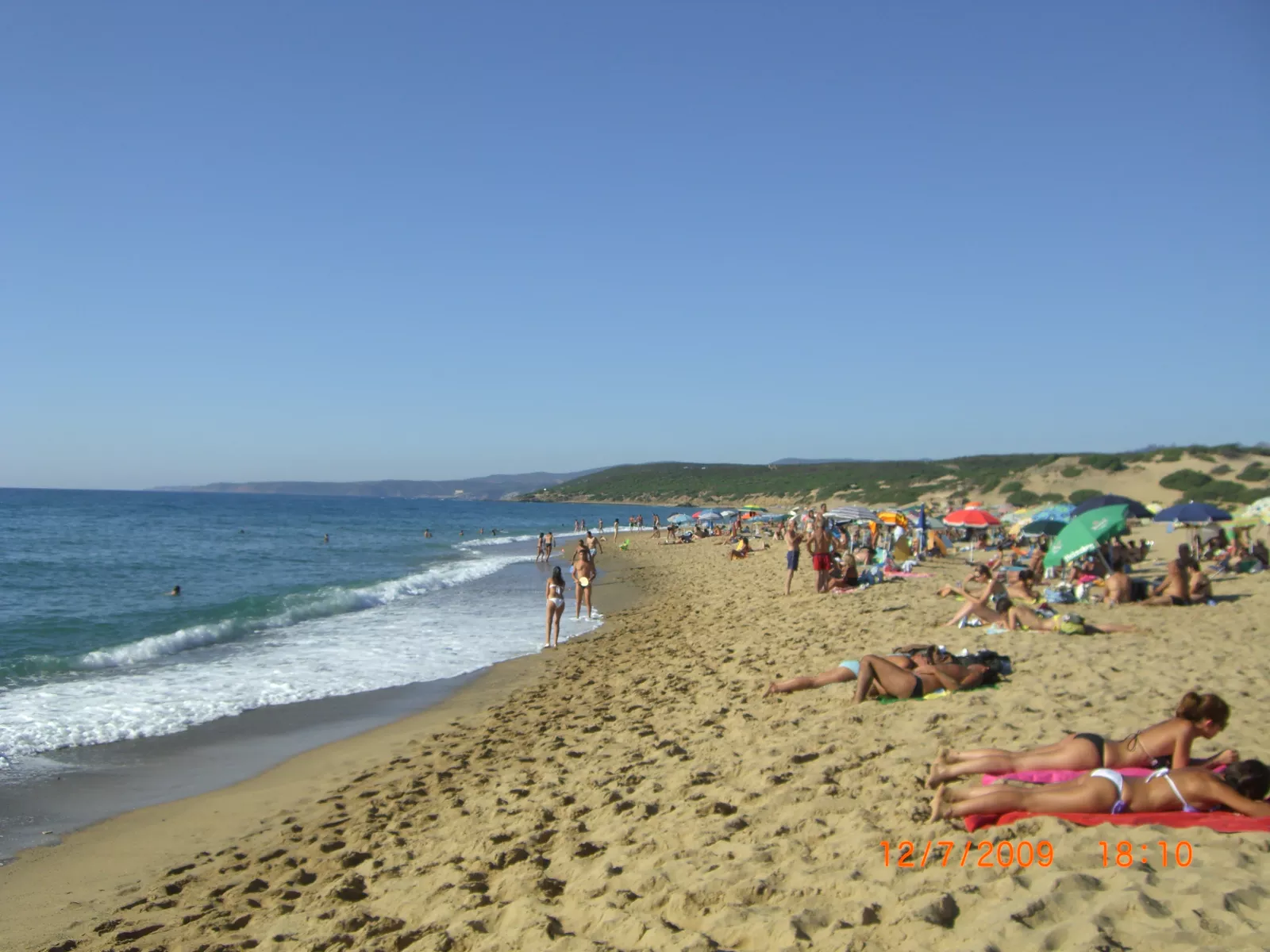 Siguiente pueblo, Arbus, perdido en el fin de la isla, un caminito de esos complicados para llegar, pero al final vas, la playa mola, bueno, en realidad es como casi todas, agua y arena, una siesta rica