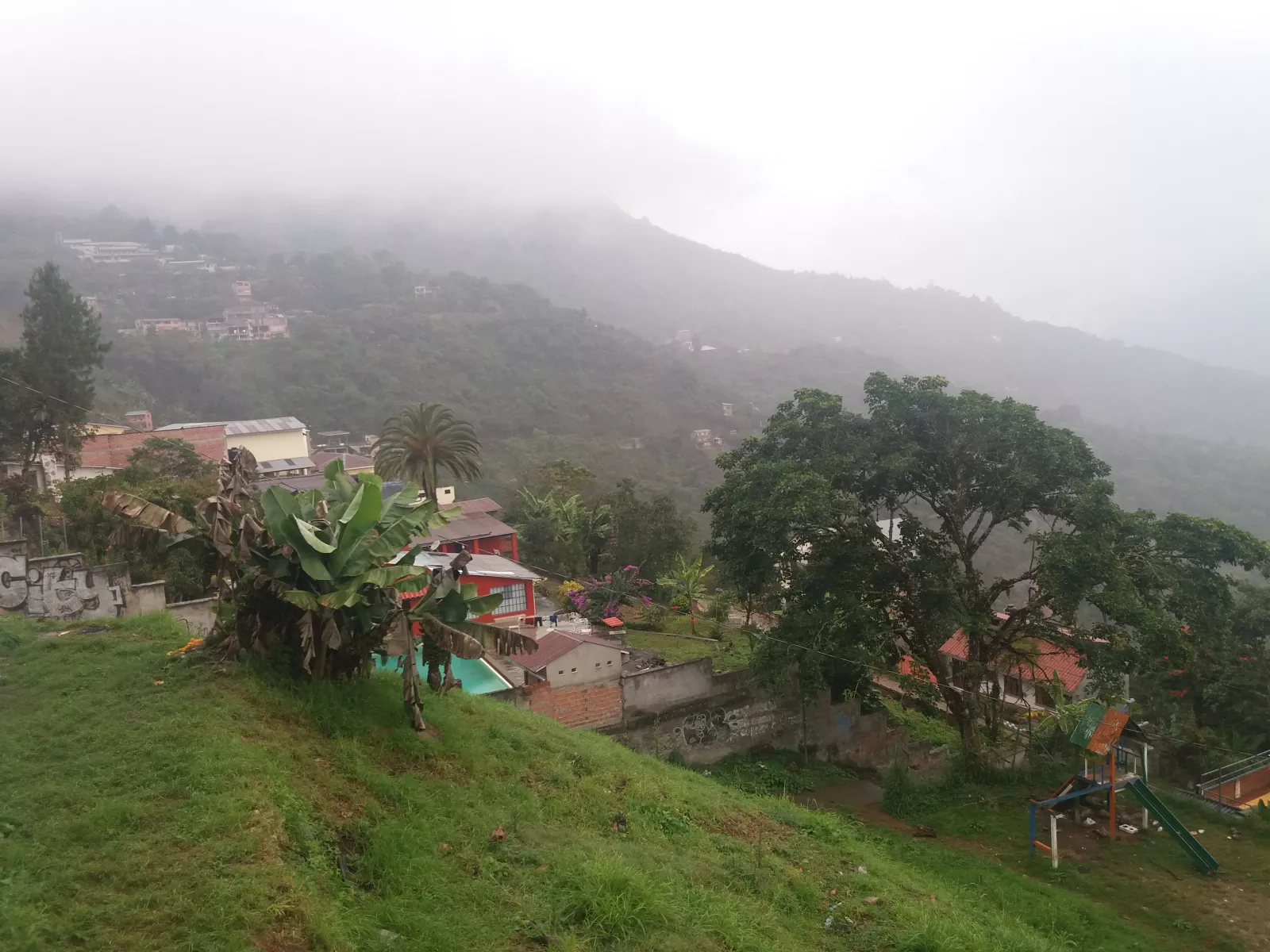 flipo, el hostel este tenía un loro que avisaba cuando se ponía a llover, en serio, pegaba unos chillidos o lo que sea, mirabas y lloviendo, surrealista.