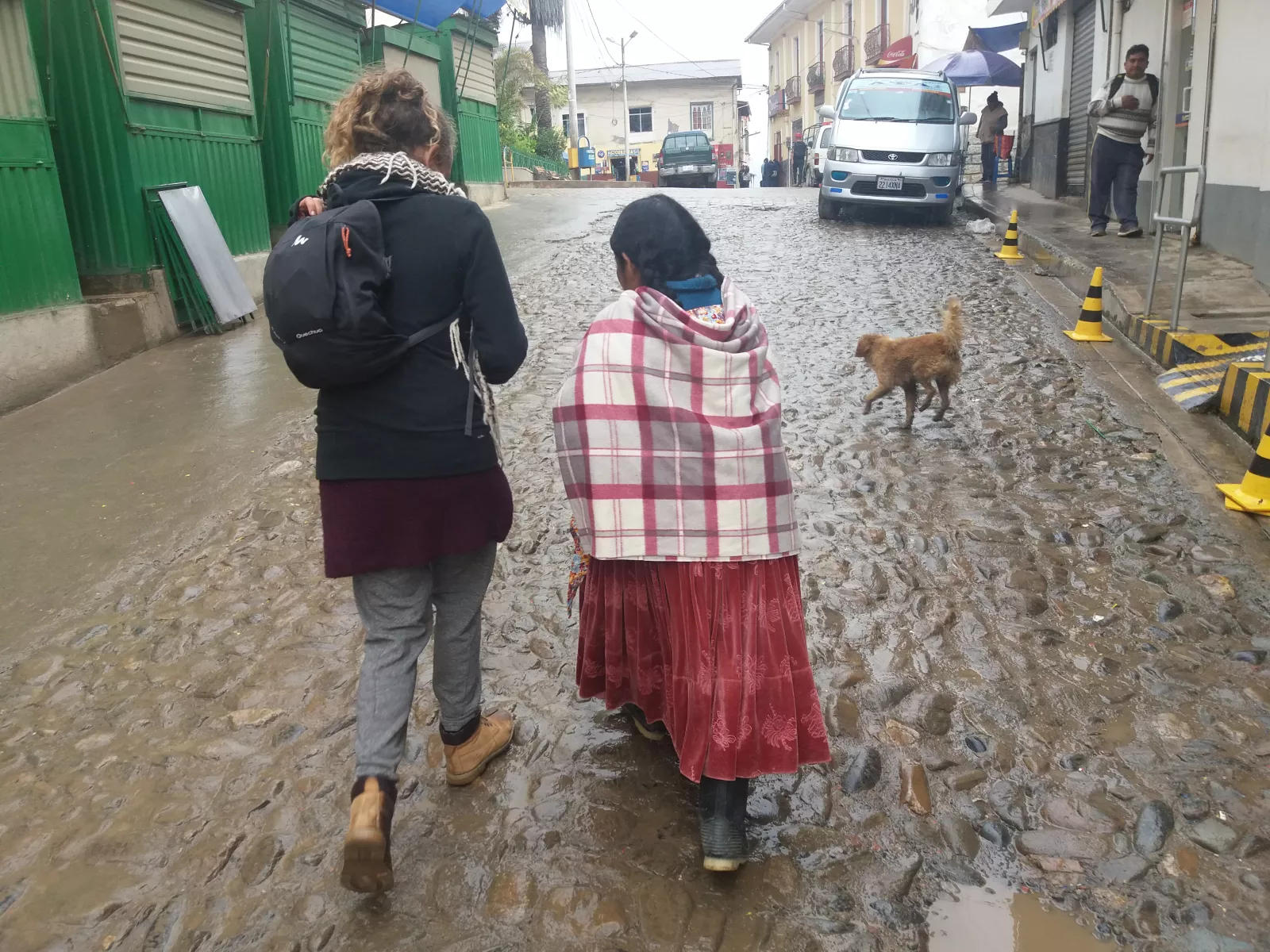 Buscamos hostel, na, uno céntrico y asquerosete, pero el más barato, ale, a la calle y hace frío, joeee, pateamos dos calles y es hora de que Vicky me diga, no tienes hambre? me parto con ella, todo el día pensando en comer… ehhh pues sí, dale, vamos al mercado central y comemos bien y mientras comíamos, su familia no dejaba de escribirla y mandar fotos del partido del Cádiz que se juega el ascenso a 2ª, que como le gustaría estar con sus padres en ese momento que están viendo el partido, ahhh la digo, joder, si quieres podemos intentar verlo por internet con el portátil, ahhh vale, total, no tenemos mucho que hacer y lloviendo