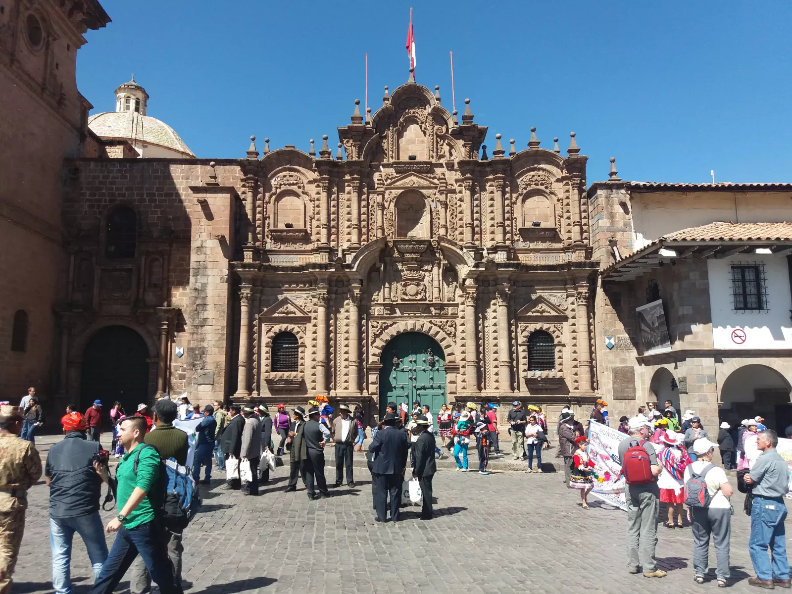 salimos de hostel y como estamos en la mismísima plaza de armas, el puto centro, salimos a la plaza y están de fiesta, todo el mundo por aquí