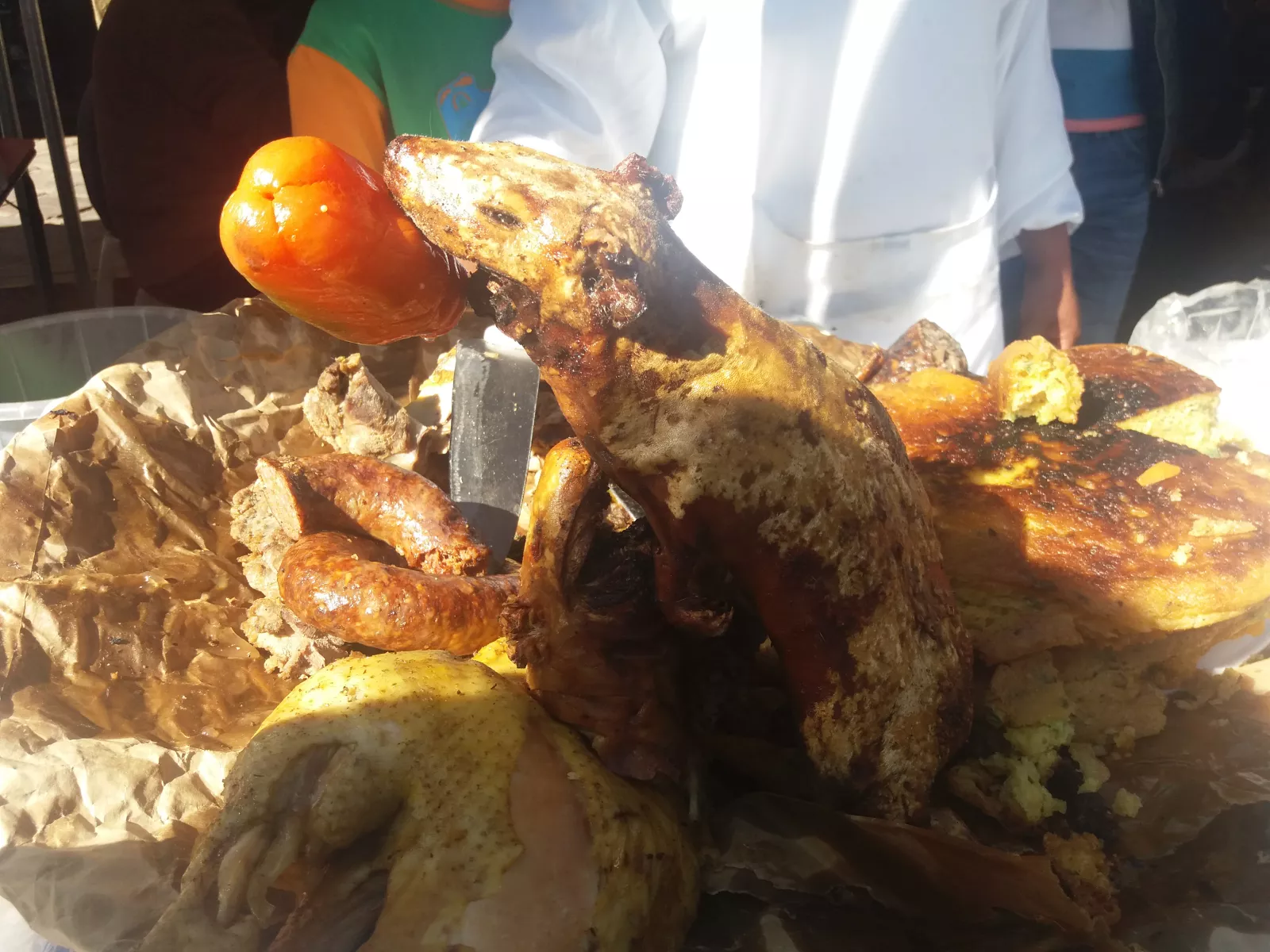 y estaba esta comida típica de aquí, que no recuerdo el nombre, pero un sencilla traducción sería... rata asada