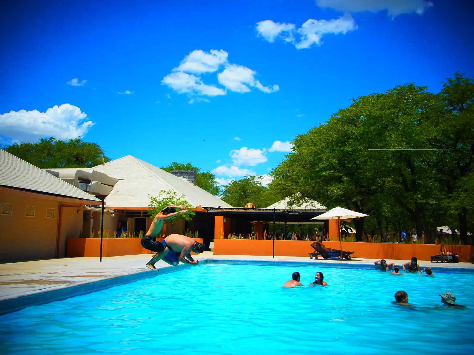 y otro mini paraiso, paramos a comer en otro campamento con su piscina casi olímpica, no me lo podía creer, eso sí, tenía muchos bichos dentro, pero te da tan igual… tienes tanto calor… y la cerveza, casi congelada, me mueeeeero, lo dicho, un paraiso y no la mierda de los animales