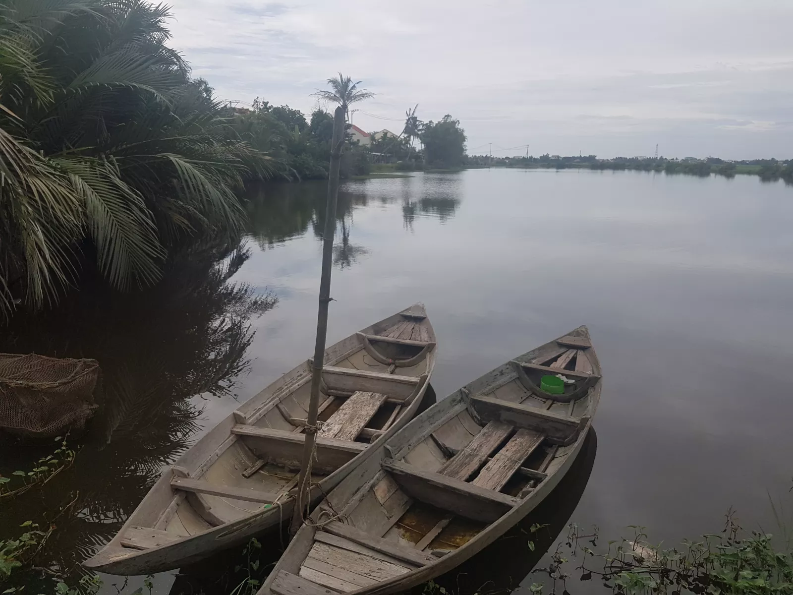 A eso de las 06 llego a Hoi An y así, de primeras, me quedo a vivir, todo verde por fin, parece pueblecito mono, todo verde y sin edificios y no se ve mucha gente ni se oye mucha moto, aunque lo dicho, son las 6