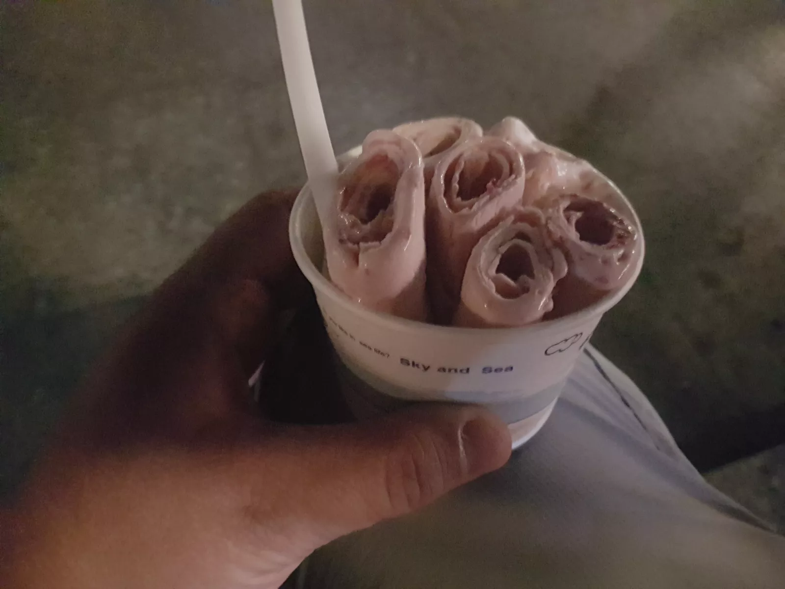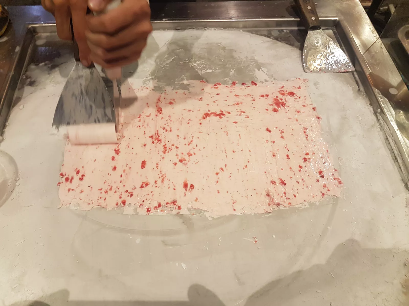 y para terminar un bontio día, pues un heladito de esos, nunca había visto algo así, tiran un líquido sobre una plancha de hielo o yo qué que es eso, empiezan a extenderlo y poco a poco se va congelando y le van dando forma, lleva un curro de cojones para que no se quede pegado