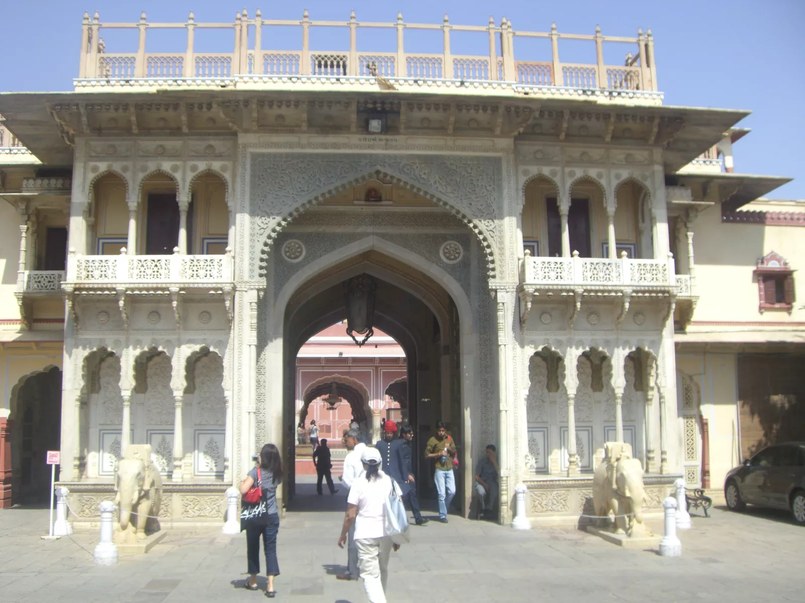 en la puerta principal están restaurando la fachada y los andamios son 4 putos palos, pero ahí están, currando y antes de que lo vea venir, hablo en voz alta: voy a mi puta bola, nos vemos en un rato, compramos los tickets y dicen que te lleva toda la mañana verlo, pues o yo voy muy rápido, o no me gusta o estoy cansado o me pierdo, pero en 20 minutos estaba visto, y para una cosa que me mola que es salón presidencial, no se pueden echar fotos, tiene tapices chulos, esculturas, alfombras y pinturas de los marahas, ya me estoy cansando de tanto maraha, más calle dios