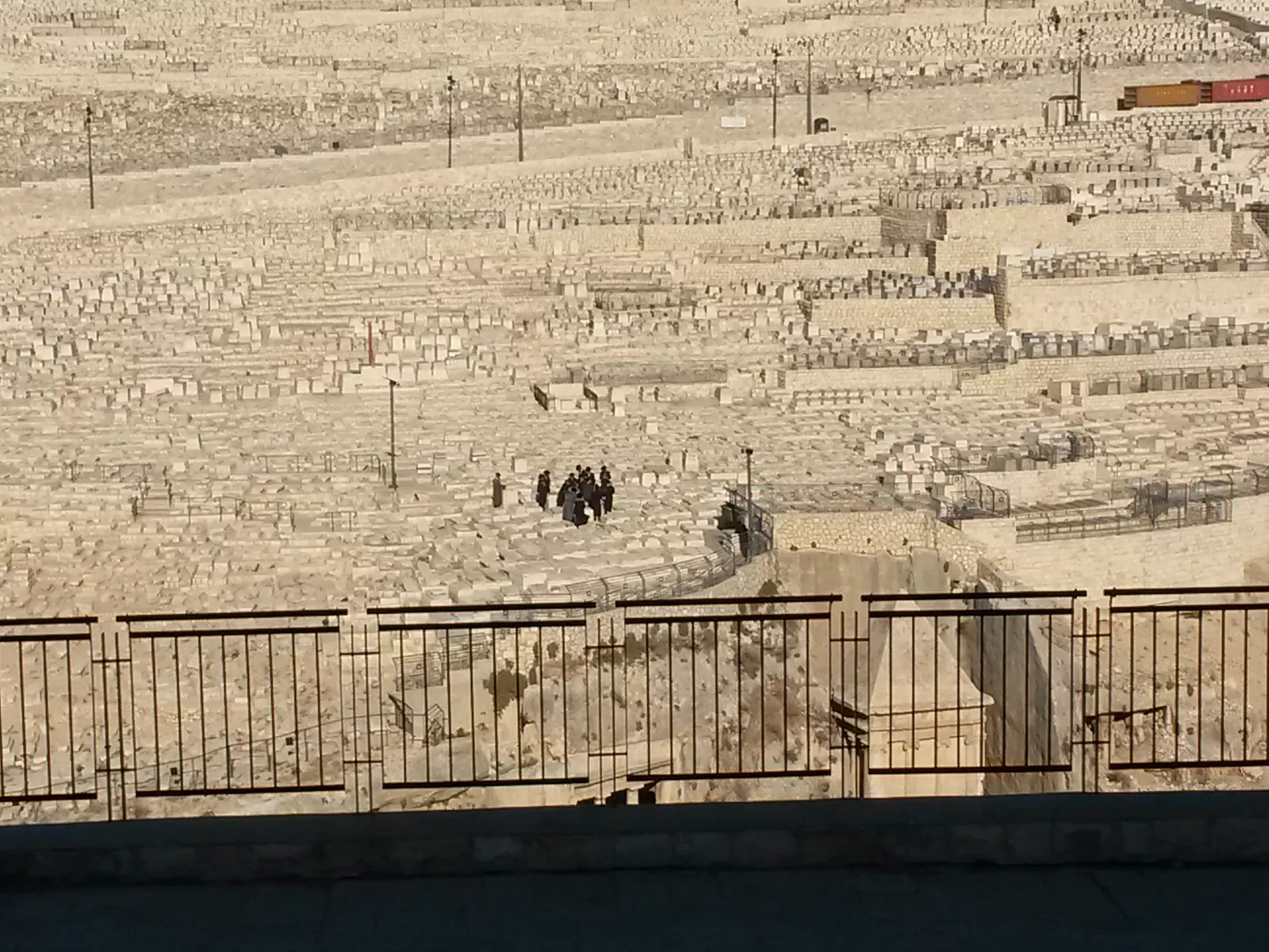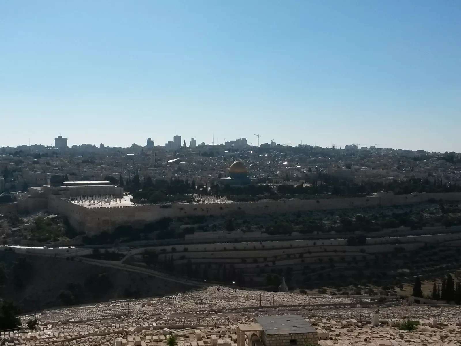 monte de los olivos, ufff lo que daría ahora por una jarra gigante de cervecita y aceitunas picantes de mi pueblo, salivo mientras escribo esto y como no, subida, pero subidita, tanto que hay mazo de taxis que son muy pesaos para que te lleven, pero no, a pata y en qué momento, si es que no puedo más y con este calor… pero lo mejor de todo es cuando llegas arriba, unas vistas, qué vistas… al cementerio