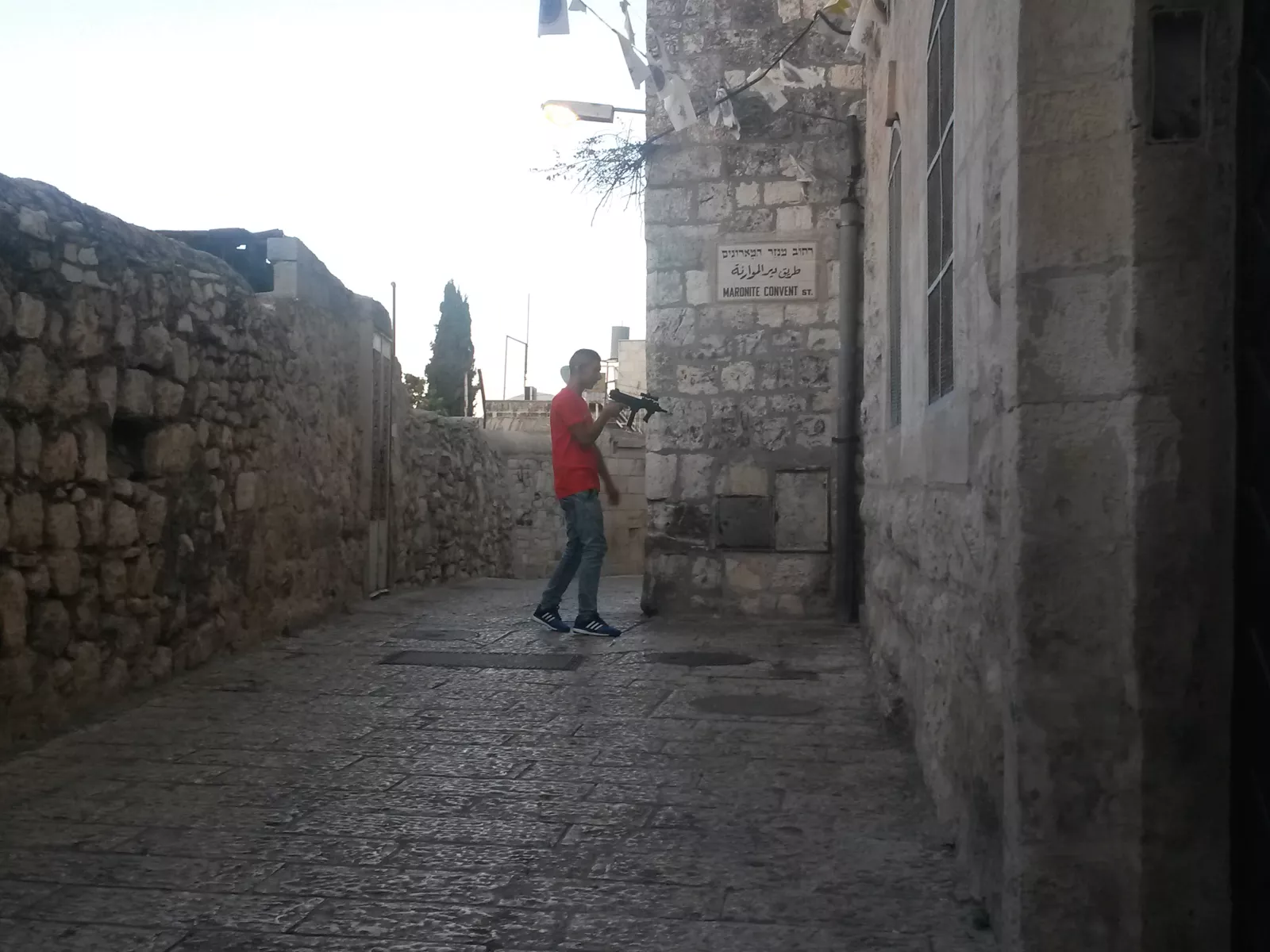 Y luego en otra que no sé qué me da que ya estuve ayer, ni me acuerdo, church of the redeemer y callejeando llego hasta un control, voy con naturalidad y me dicen que de donde soy, ehhh, que más dará, pienso yo… pregunto, por? insiste, de dónde eres? de spain, cristiano o musulmán, ayyy dios, si digo musulmán no sé nada más que Alá y si digo cristiano, recuerdo alguna frasecilla del padre nuestro, así que cristiano, pues muy bien, no puedes entrar, solo musulmanes, joeee que mala suerte, bueno, era de esperar pero no me rindo, ya ya, vengo a convertirme... no dice el creador que todos debemos vivir mancomunados y en paz en este hermoso lugar que ha creado para nosotros? pues ahora mismo está fomentando violencia en mí porque lo único que quiero es entrar y no me dejáis, en fin, porque lleváis metralletas, que sino...