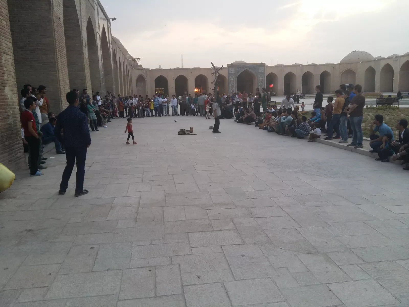y fin, vuelta a Kerman, una pateada sin sentido por la ciudad y gracias a eso, he vivido uno de los momentos que no sé ni como describirlos, surrealistas es poco, veo un sitio raro del que salía música y digo, voy a echar un vistacillo a ver que hay dentro, entro con cuidado y es que sigo sin tener palabras, era como una sesión de spinning pero a la iraní, me quedo loco, esto merece la pena verlo y vivirlo para el recuerdo, me siento en las gradas y a verles, no me dicen nada así que doy por hecho que puedo estar ahí. es surrealista, había un hombre como en una sala de dj, tocando instrumentos y cantando, vamos, el típico hombre orquesta, y los mendas estaban en un círculo sobre una especie de foso, no sé, todo muy raro, así que, mejor que palabras, es verlo