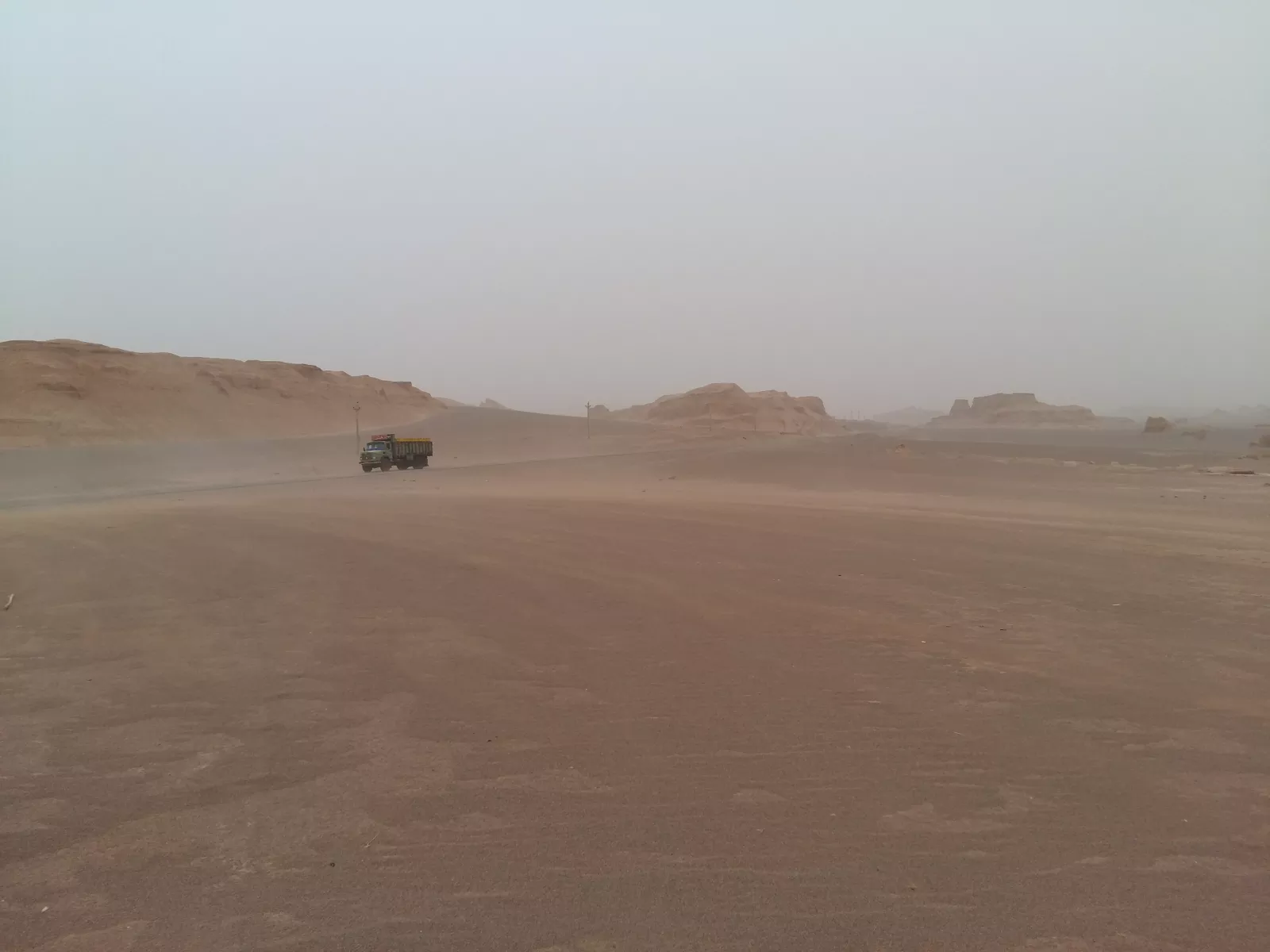 otros tanto kms para ir los Kaluts, un desierto, kms y kms por una carretera que me habré cruzado con un coche y dos camiones, ahí va uno