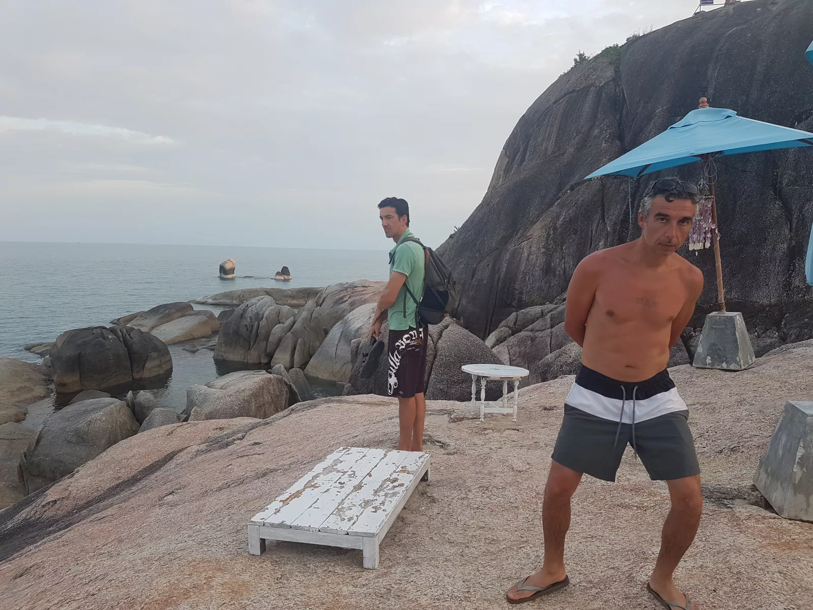 y así, sin más, como la siguiente foto es del día después, imagino que llegaríamos a la segunda isla en un barco a punto de morir, isla Koh Phangan, chula, como todo por aquí