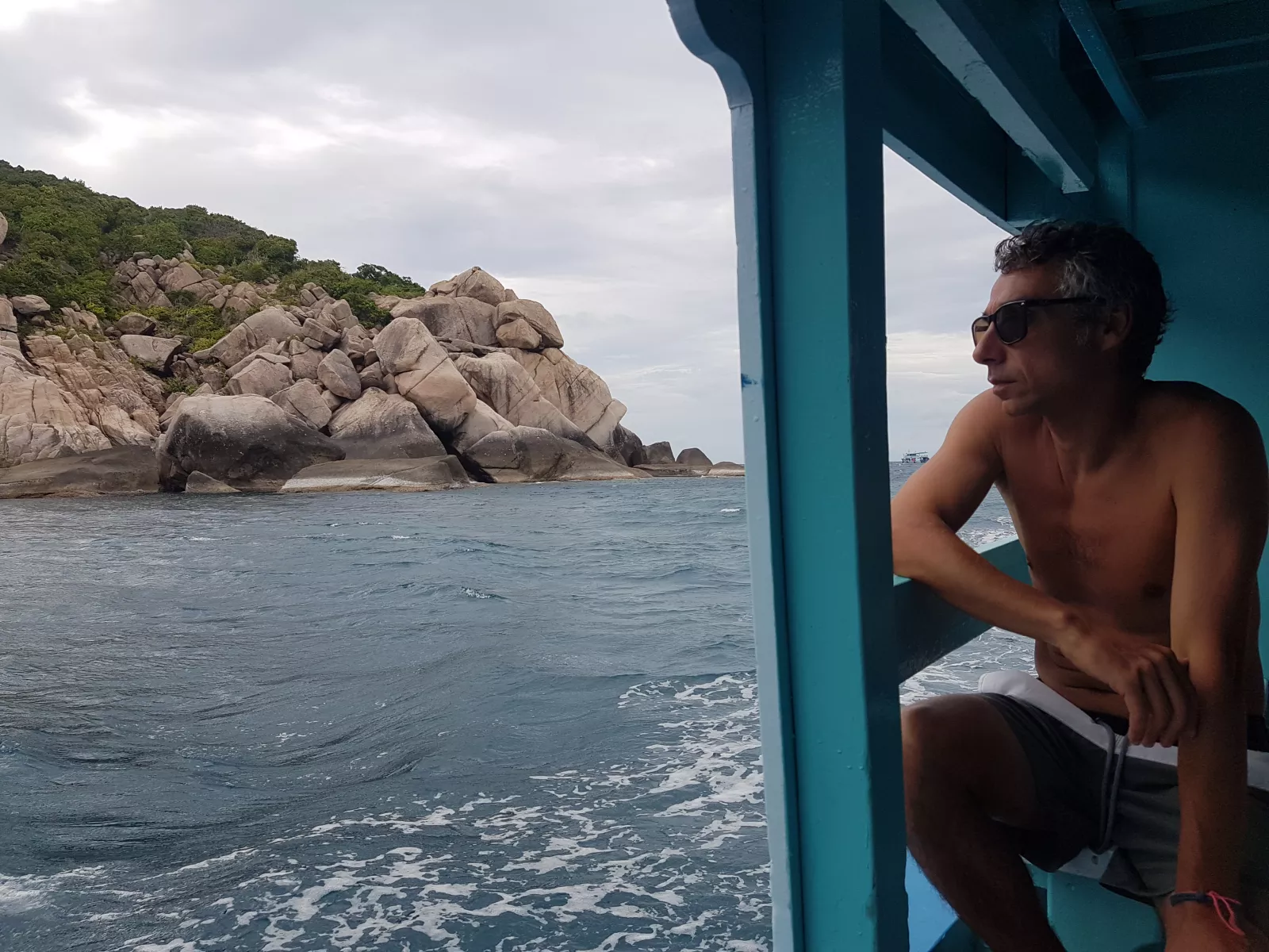 fuimos también a otros dos puntos más, si no recuerdo mal, para hacer snoorkel, uno de ellos en aguas así abiertas, donde incluso se veía alguna cría de tiburón, además de los miles de peces de colores y rarezas que se ven por ahí abajo y otro por ahí que ni recuerdo. Si que recuerdo también que se podía saltar desde lo alto del barco, ahí todas las locas tirándose como si na, muu bien y sinceramente, no me acuerdo de más por que no tengo ni una foto más, eso sí, un pequeño vídeo que no se nota como se mueve el barco, pero se intuye con las palabras de carlos