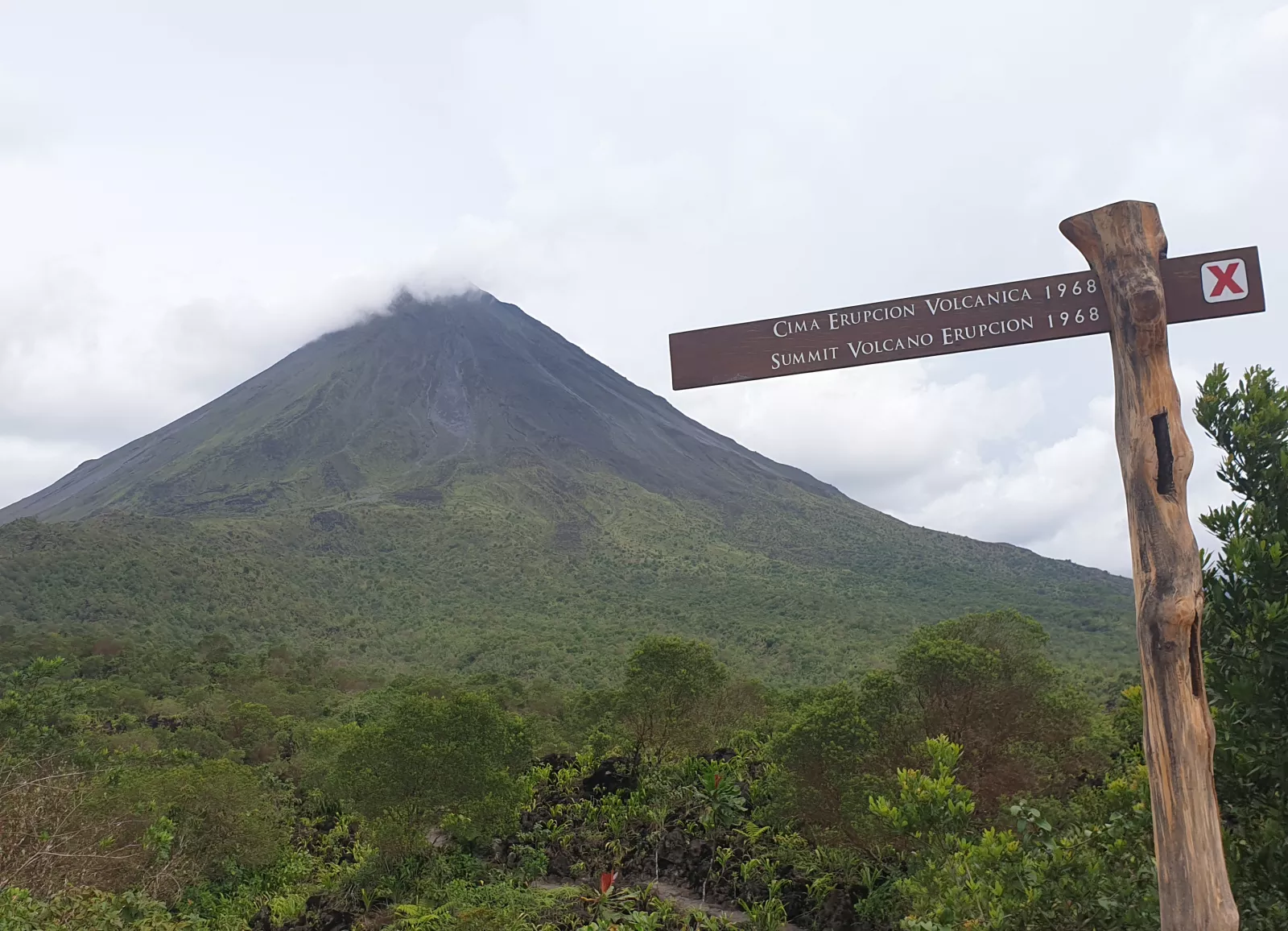 Llego a las 13:00 a la entrada del parque, como no, pago 18$ y tienes dos senderos, el corto, 2 horitas y el largo, 3 horitas, bien, me fijo en el corto, como no y la chica me explica cosas del parque, que si tiene el lago artificial más grande de Centroamérica, que si tiene otro lago artificial pero que ni se me ocurra bañarme, no?, nooo noo, que si la última vez que entró en erupción fue en 1968 y arrasó todo, y desde 2002 o algo así no emite lava, que solo gases tóxicos por eso está prohibido subir hasta la cima, madre mía que chapa, venga, que lo disfrutes.