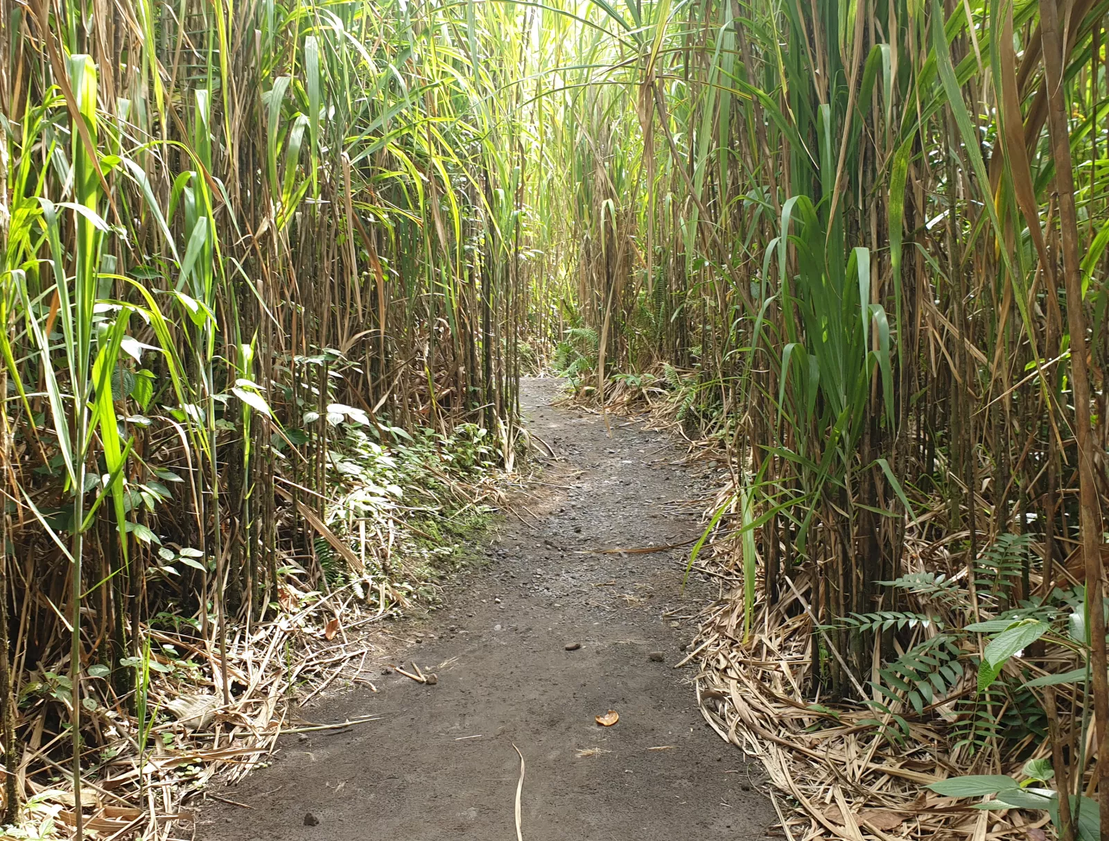 y solo piensas, de verdad que aquí hay cocodrilos y te dejan pasar como si na? también yo, quién empieza un trekking a las 13:00, no veo a nadie, ni dios en todo el camino, acojona un poco, en serio...no entiendo, me supera y superado el susto, empiezo a subir, subir y subir, poca cosa y de repente, desaparece jungla, aparecen piedras negras, supongo que de lava y el volcán detrás, muy chulo y muy grande y con una nubecita que parece que estaba erupcionando o como se diga, mola