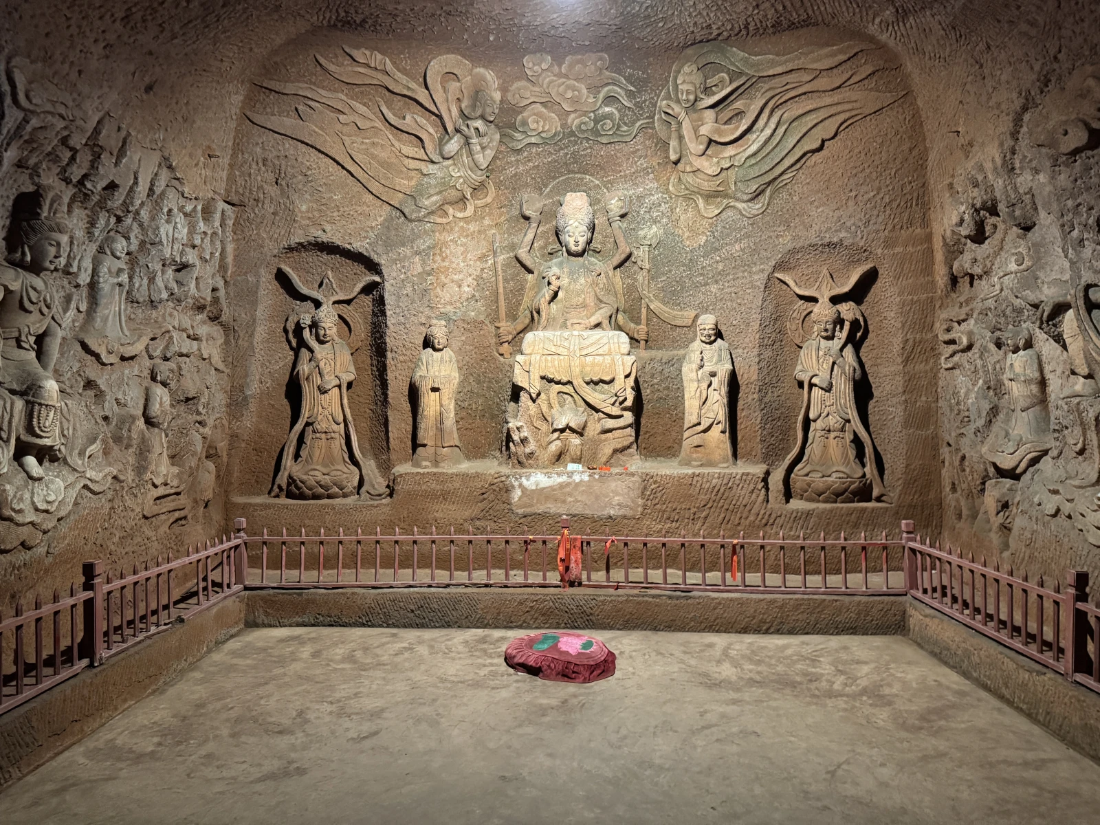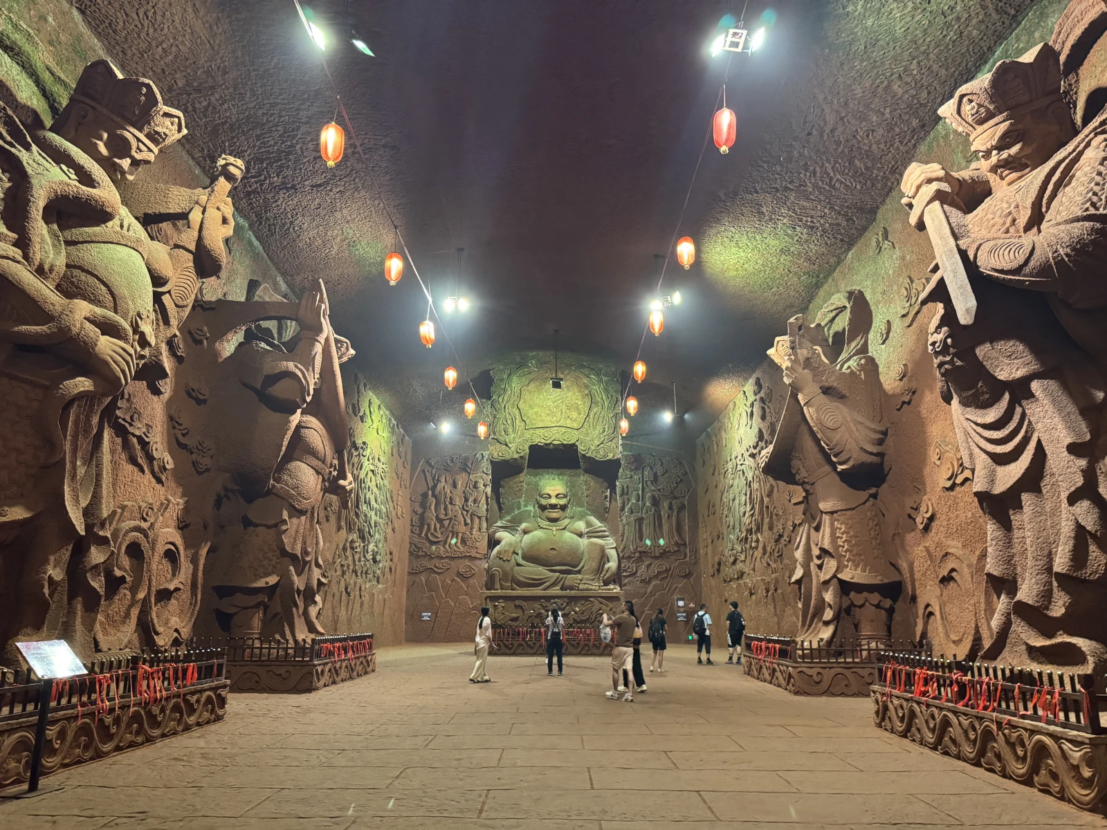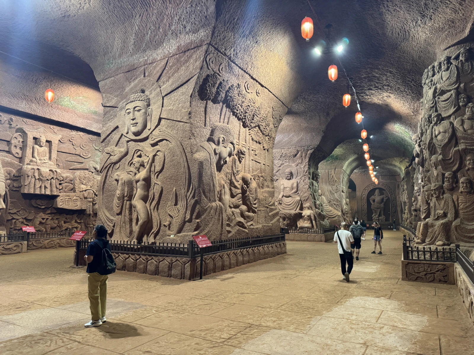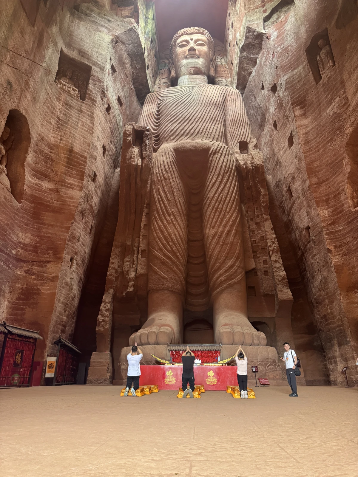 sigues caminando y de repente otra galería con otro pedazo de Buda gigante, este ya sentado, normal, estarían tan cansados los pobres chinos o extraterrestres de tallar todo lo anterior y aquí querrían rendir homenaje a la gente cansada y dijeron, este Buda sentado, increíble lo grande que es también, es que si no se ve no se asimila, brutal