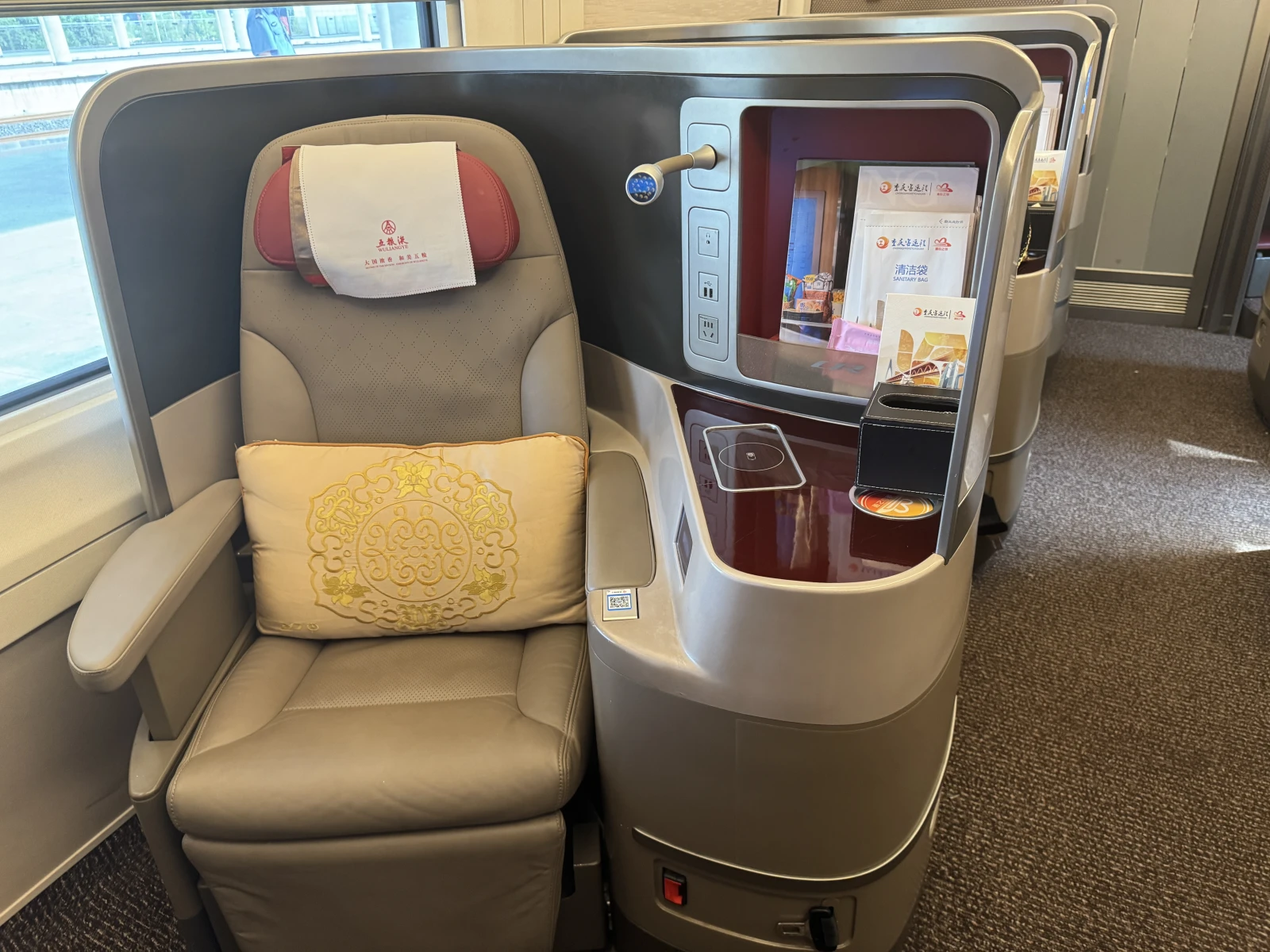 Nueva ciudad, Leshan y el motivo del viaje es para ver el gran Buda tallado sobre la pared, cuando lo vi por primera vez me dije, ahí quiero ir. Ale, ya son las 06:01, a las 06:30 tomando un café súper rápido y a las 06:45 pillando taxi para ir a estación y pillar tren a las 07:40 para ir a Leshan, que por cierto he pillado la clase business, 20 euros para un trayecto de 45 min, la primera vez que viajo en business y como molan los asientos, se hacen cama, ojalá uno de estos para el vuelo que me espera en dos días de 13 horas, madre mía.
