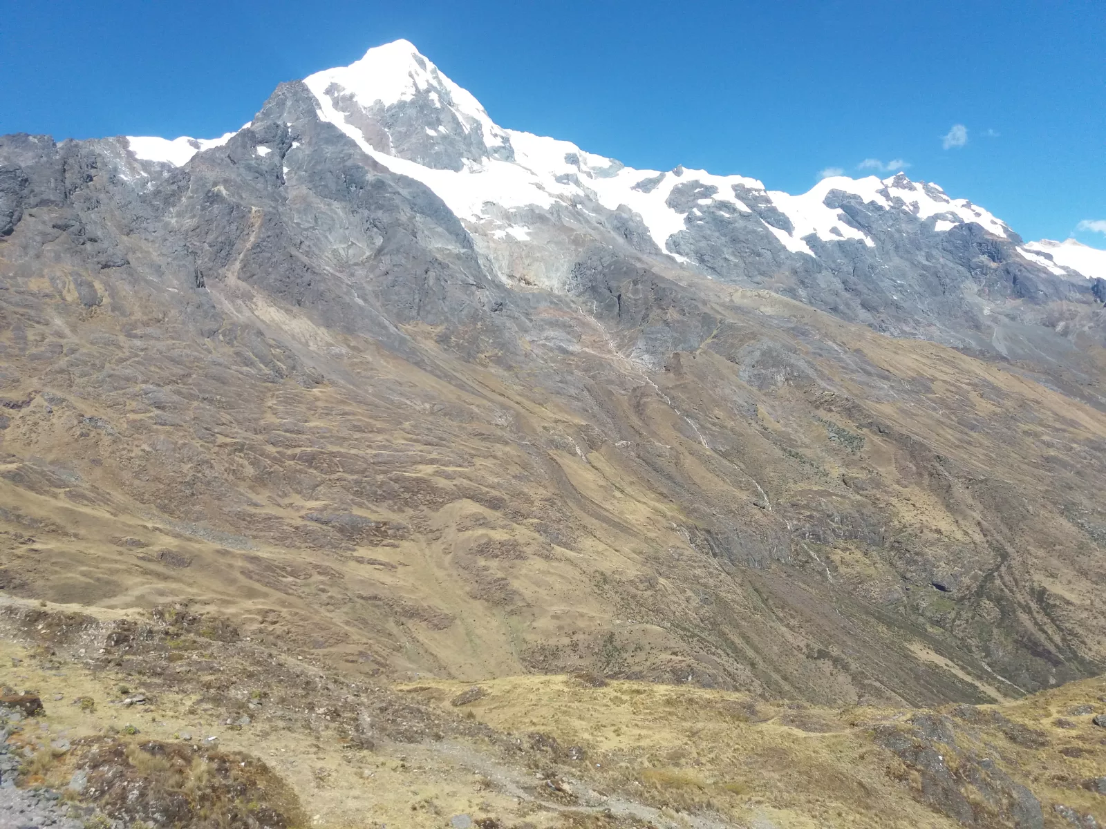 Bueno, hacía muchos muchos años que no tenía la sensación de querer vomitar en coche, vaya caminito, de infierno, de verdad, también sin desayunar ni naa, voy vacío… primero ascendemos montaña hasta 4300 mts por carretera de infinitas curvas, ni una puta recta y unos precipicios de como caiga, mueren todos menos yo, después descendemos hasta los 2300 mts, lo mismo, carretera con infinitas curvas y precipicios todavía más grandes, pero, con unos paisajes muu chulos