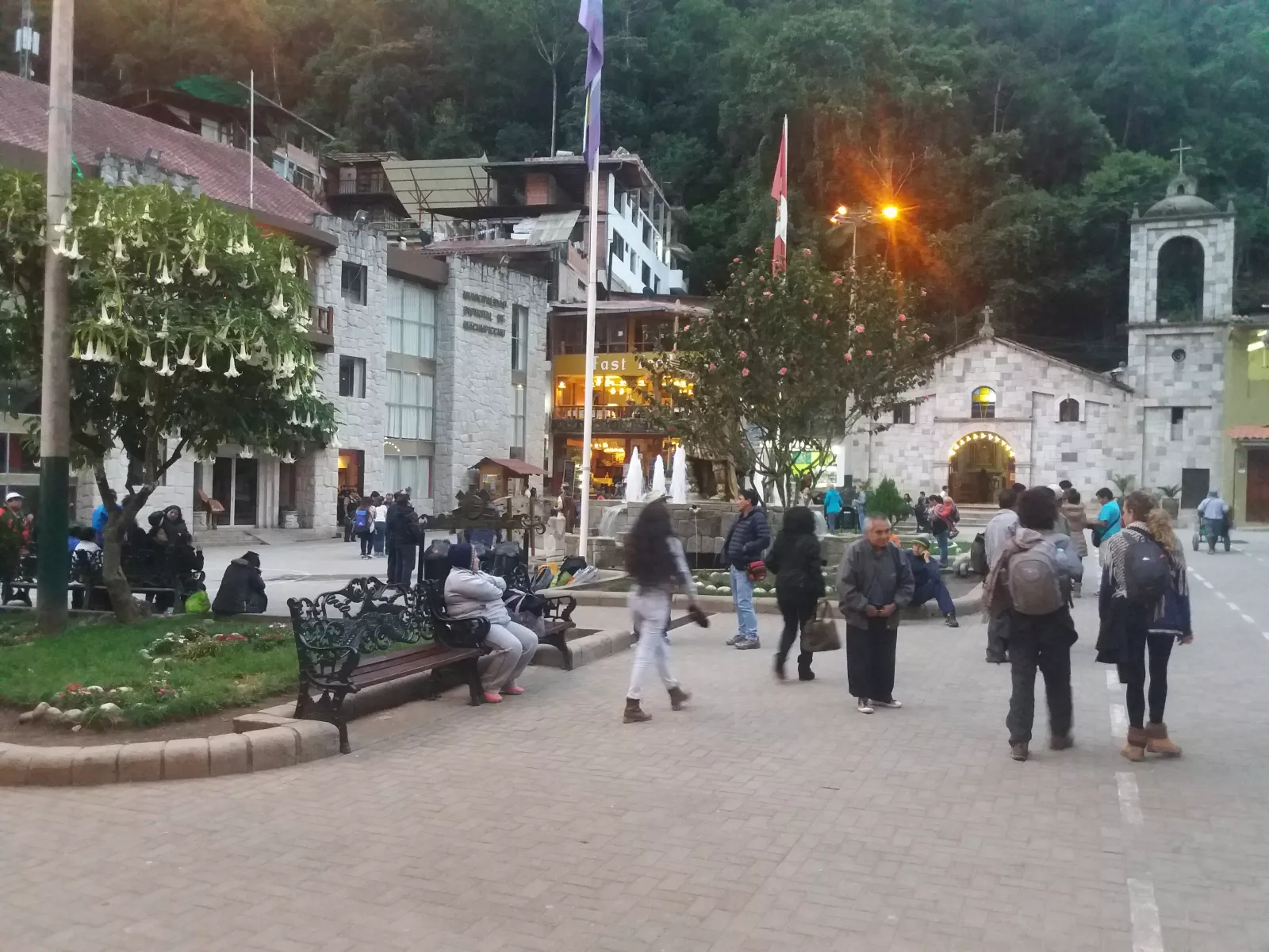 según vas caminando, las montañas son cada vez más altas, todo muy chulo y finalmente, tras 3 horas de marcha, llegamos al pueblo de Aguas Calientes, así de primeras, chulo pero muy muy turístico y abarrotado de gringos, pero petao, dan asco, y según vas llegando, la manera que tiene la agencia de encontrarte para llevarte a tu hostel es gritando tu nombre en medio de la plaza, surrealista.