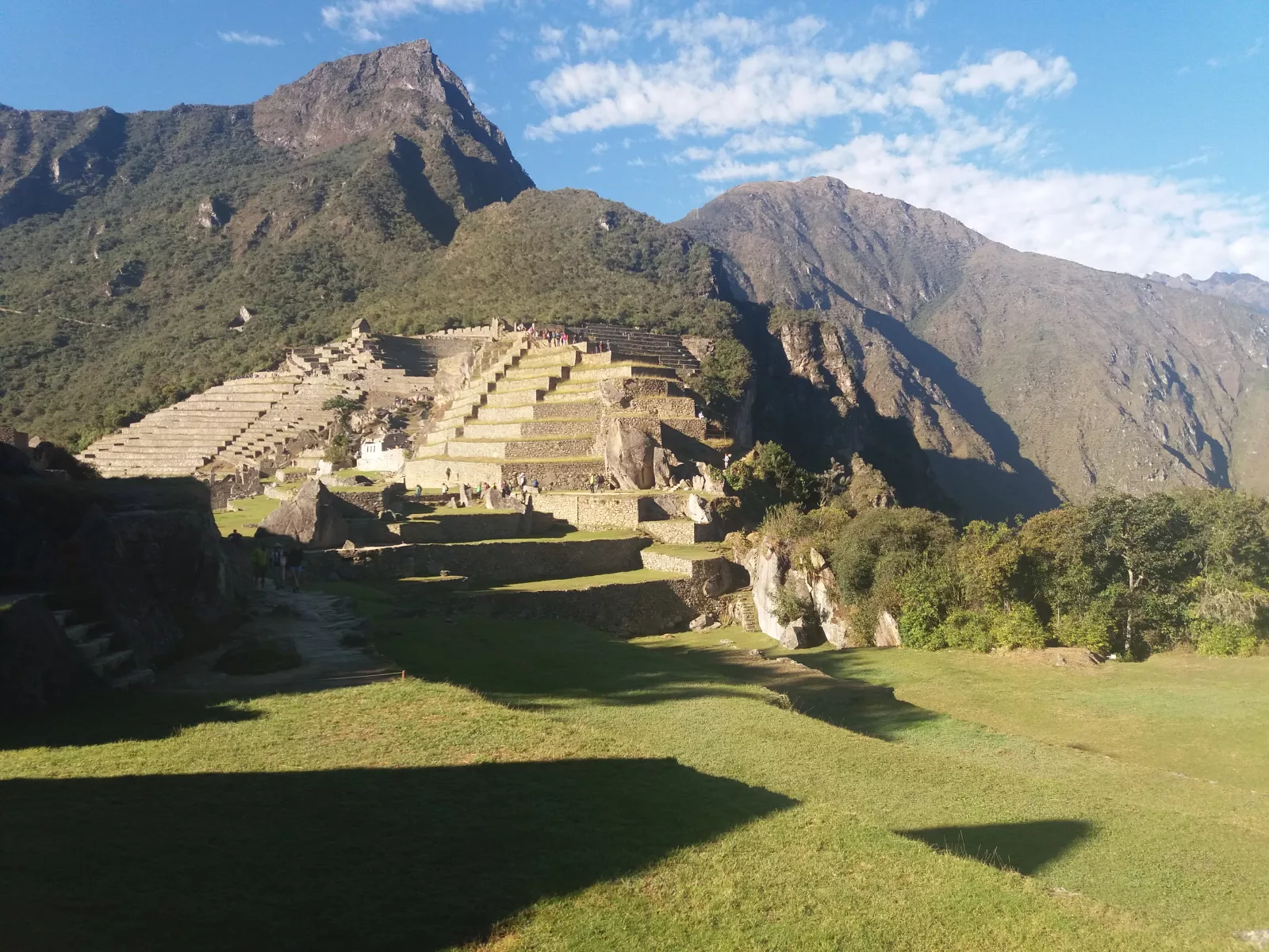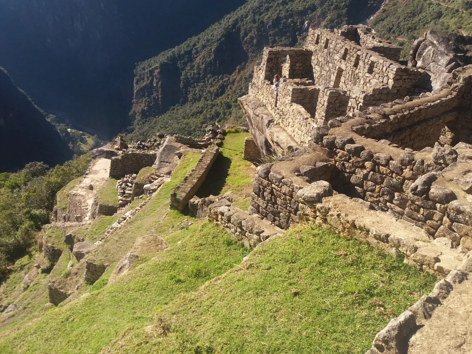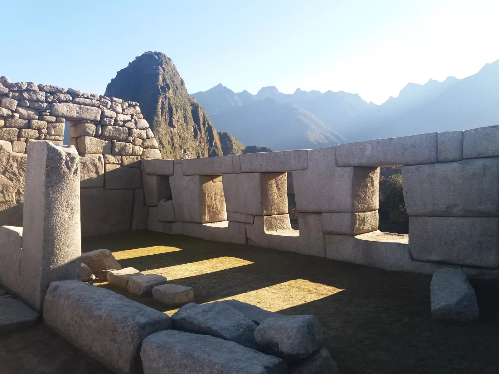 El santuario está lleno de lugares sagrados como un templo, unas ventanas de piedras que indicaban según la entrada de luz los comienzos de los solsticios y equinoccios, toda la ciudadela está de cara al sol, como los diferentes niveles además de ser un soporte vital para la ciudad servían para evacuar agua en épocas de lluvia, todas las construcciones están inclinadas 14° hacia dentro para en caso de terremoto, se derrumbase hacia dentro y dejar libres las vías de escape, muuu listos los mendas estos para haberlo construido hace más de 500 años, es increíble y por supuesto, la majestuosa montaña WainaPichu al fondo, donde también existen construcciones que servían como fortaleza, observatorio de astronomía, templo sagrado, no saben con exactitud ya que calculan apenas conocen un 30% de la cultura inca.