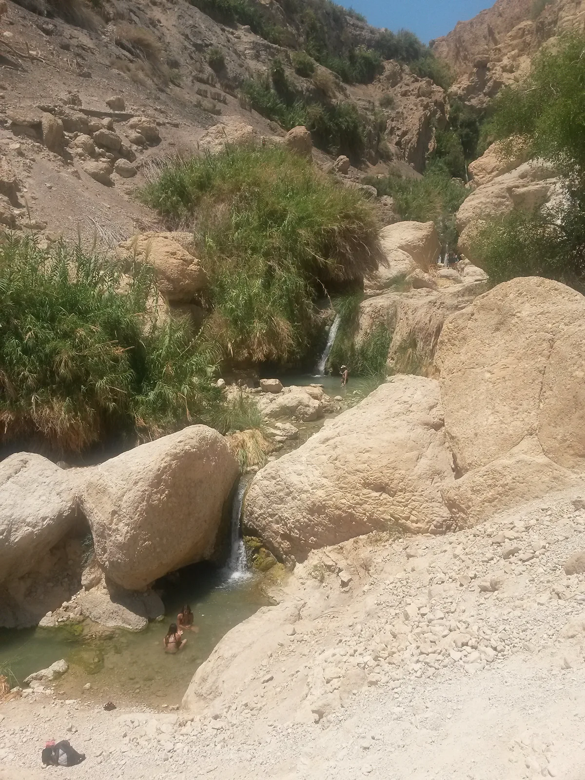 y una charquita que no por pequeña, menor interesante, por lo menos en cuanto al baño, dios mío qué rico, qué placer, muero de gusto… una duda, si estoy en el puto desierto, porque quitando el mar, que contradicción, el mar aún lado, el desierto a otro, todo seco y árido, y estoy viendo, no, estoy bañándome en unas charcas, que por favor alguien con conocimiento de causa me explique de donde viene el agua porque ahora mismo sólo encuentro explicación: la divina… gracias por ponerme ahí a ese par de muchachas, que por cierto, ni saludar, ya sé que más no puedes hacer, pero para otra, pues... no sé, algo más