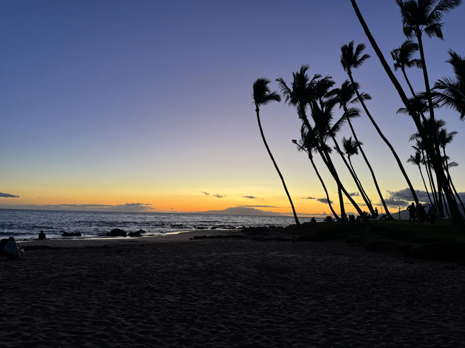 Ya en Kihei, hago checkin, bañito en la playa que la tengo enfrente y mi primer atardecer en Hawaii, chulo