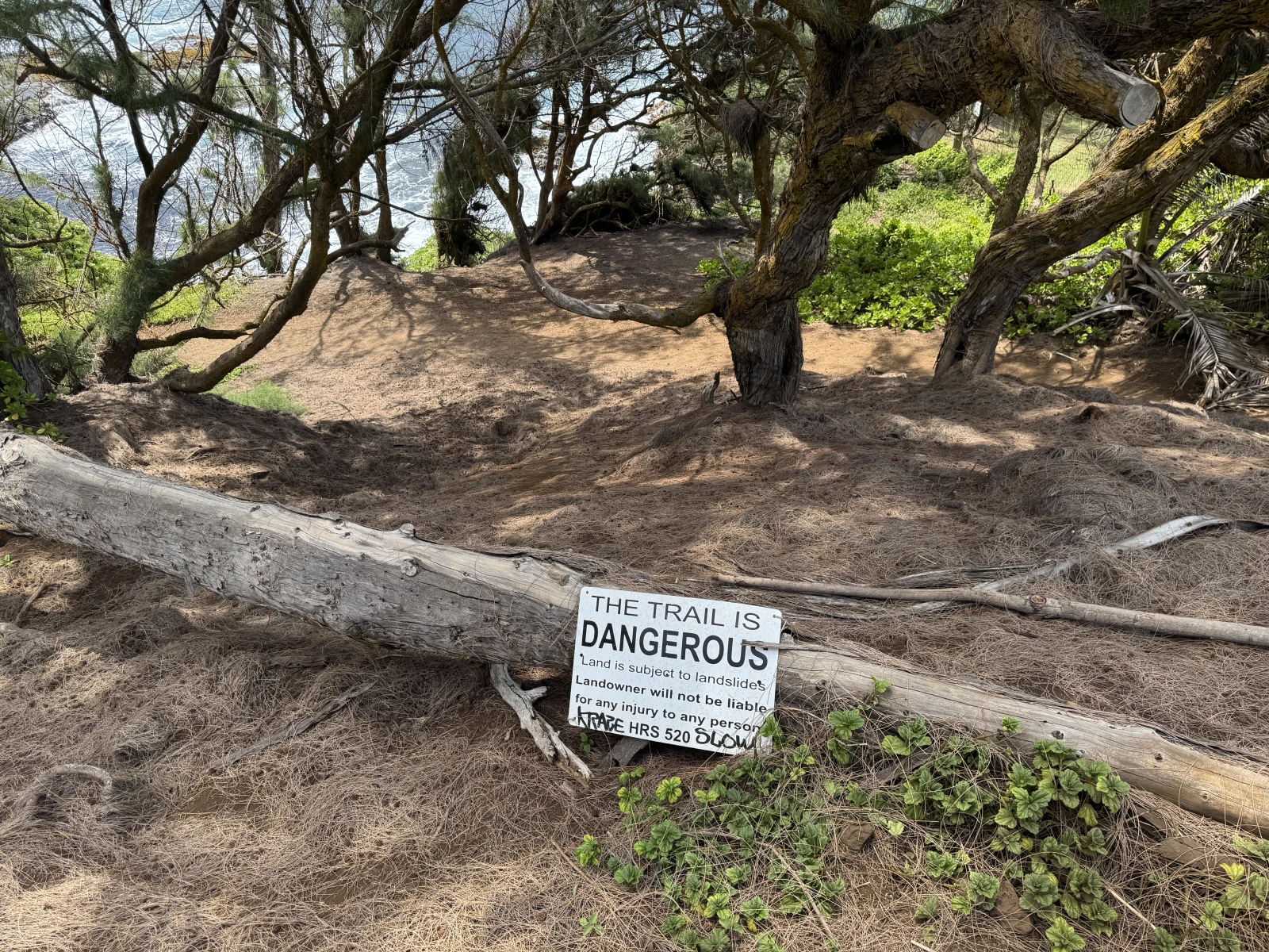 Decimosexta parada Kaihalulu Red Sand Beach, este es uno de los puntos de esta ruta, es una playa de arena roja que está escondida y doy fe. Cuesta encontrarlo y a la entrada hay un sendero peligroso, no lo digo yo, lo dice el cartel