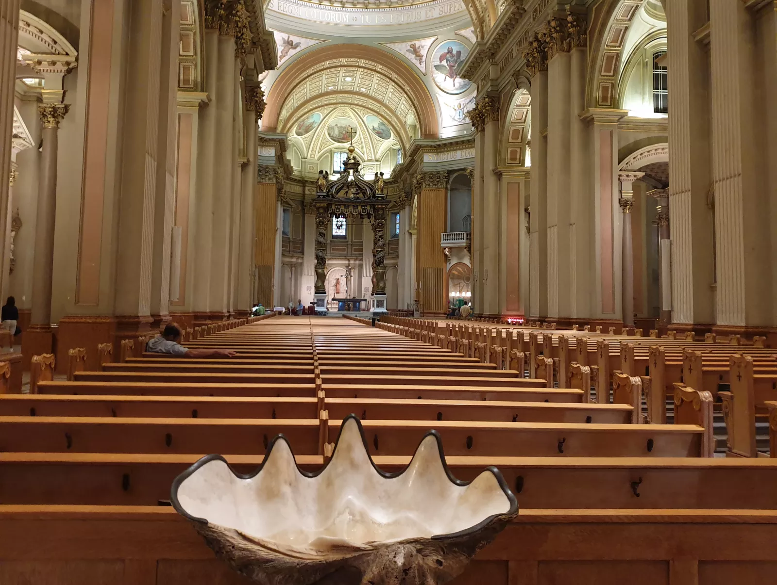 paso por la zona financiera donde la mayoría son curritos y solo unos pocos privilegiados y nada más, algún parque entre edificios, por lo menos da algo de vidilla, algunas iglesias, una catedral que por supuesto entro y lo que nunca, estaba vacía, con cientos de bancos y pienso, joder, si me tumbo en uno de ellos por ahí por el medio pa echarme una siesta no me ve ni dios, bueno, él sí, dicen que lo ve todo, pero me hubiese dado igual, seguro que ahora mismo se está echando un siestón a nada que tenga un pelín de adn español.