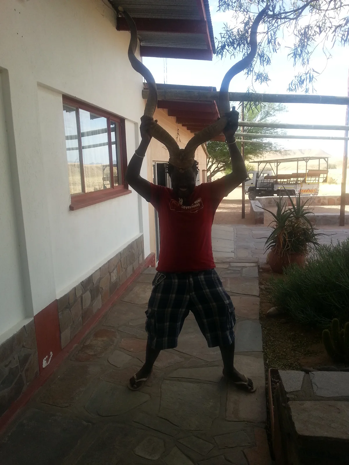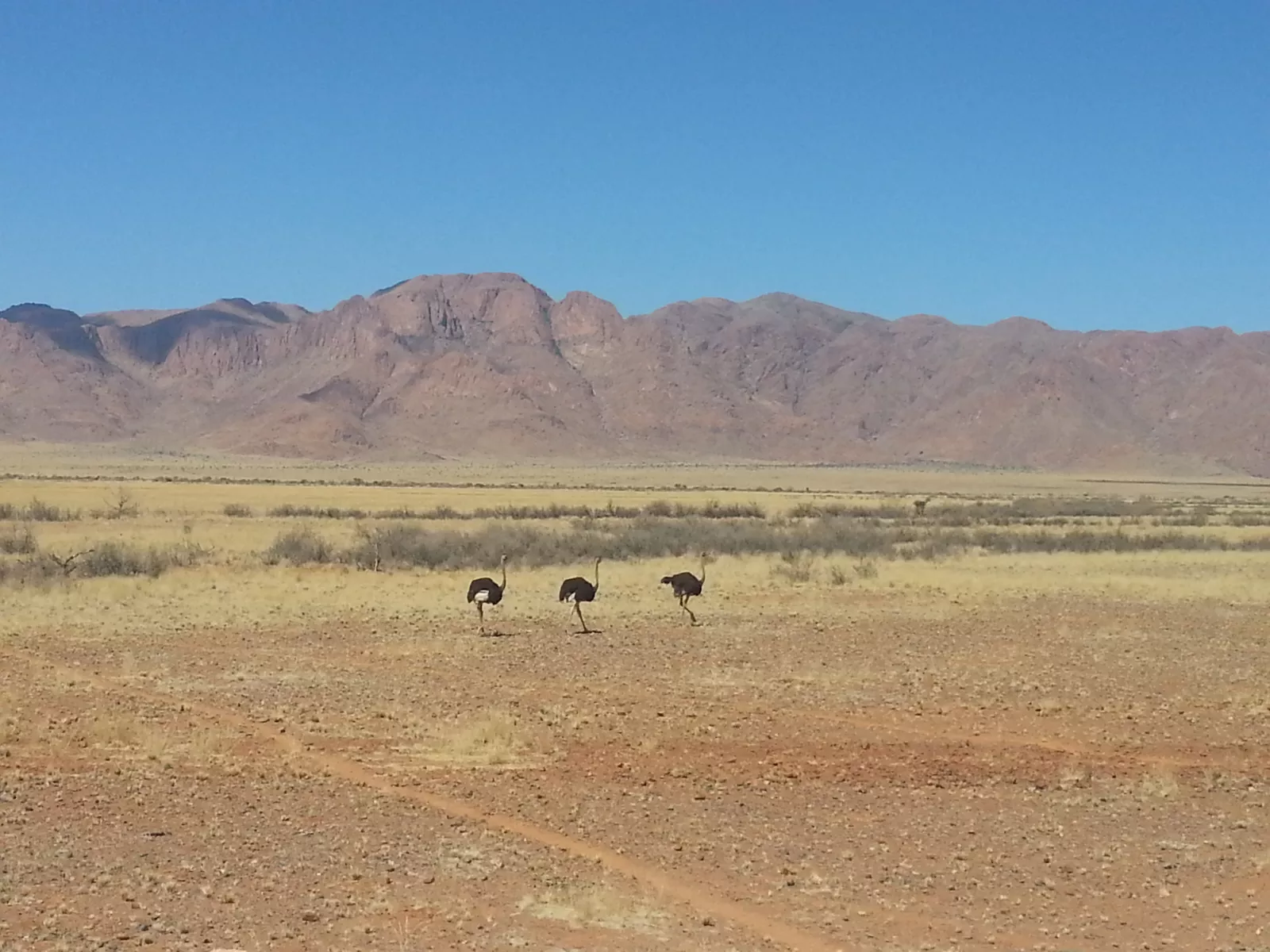 el paisaje es completamente desértico, árido, alguna montaña chulísima y piedras, muchas piedras… también vemos avestruces, por aquí? y un bicho raro parecido a un impala pero con cuernos muy graaandes.