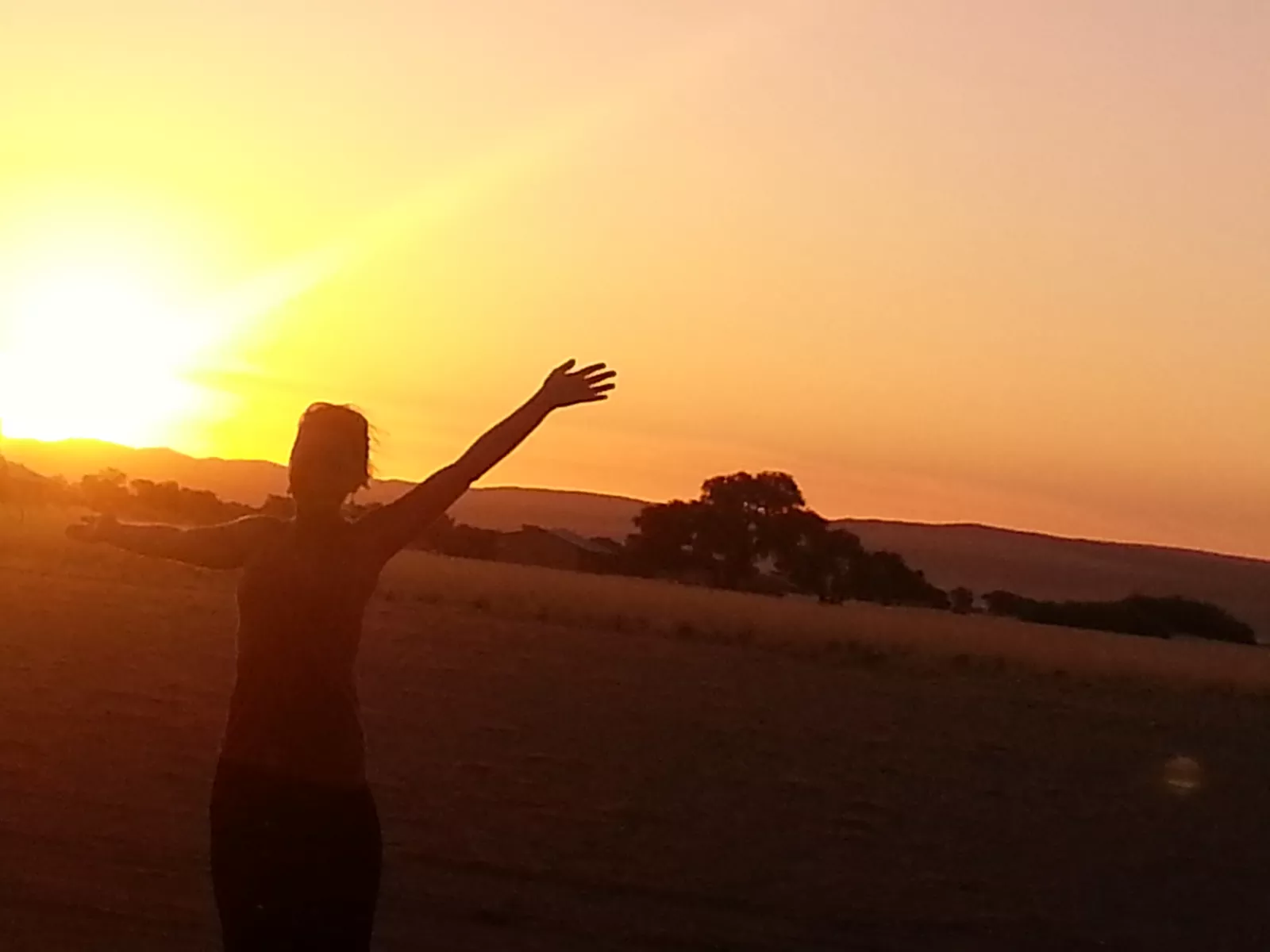 luego hemos ido todos a ver una nueva puesta de sol, chula, con colores muy… muy… no sé, y ella.