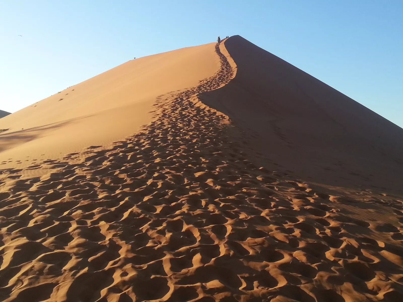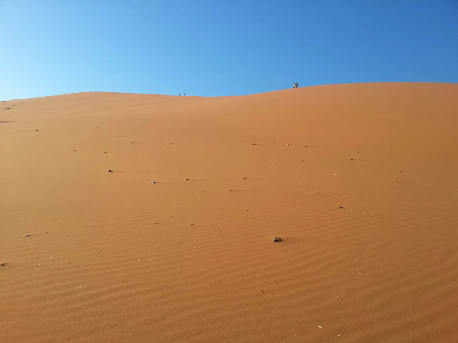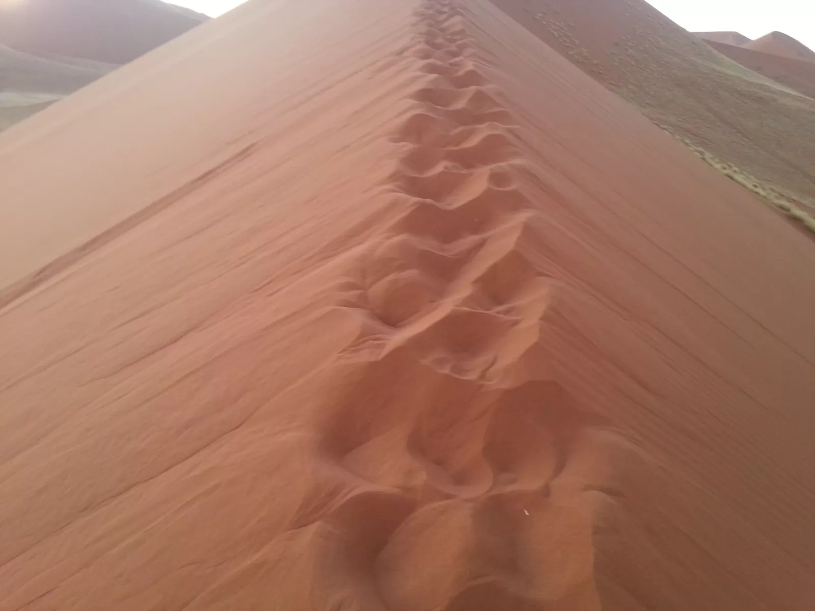 cuando veo la duna que hay que subir, casi me da algo, 300 metros y lo dice el guía que sabe mucho, ahora entiendo porque la gente muere en el desierto, no es por falta de agua, que siiii, es porque es durísimo subir la duna, se te llenan las zapas de arena y pesas el doble