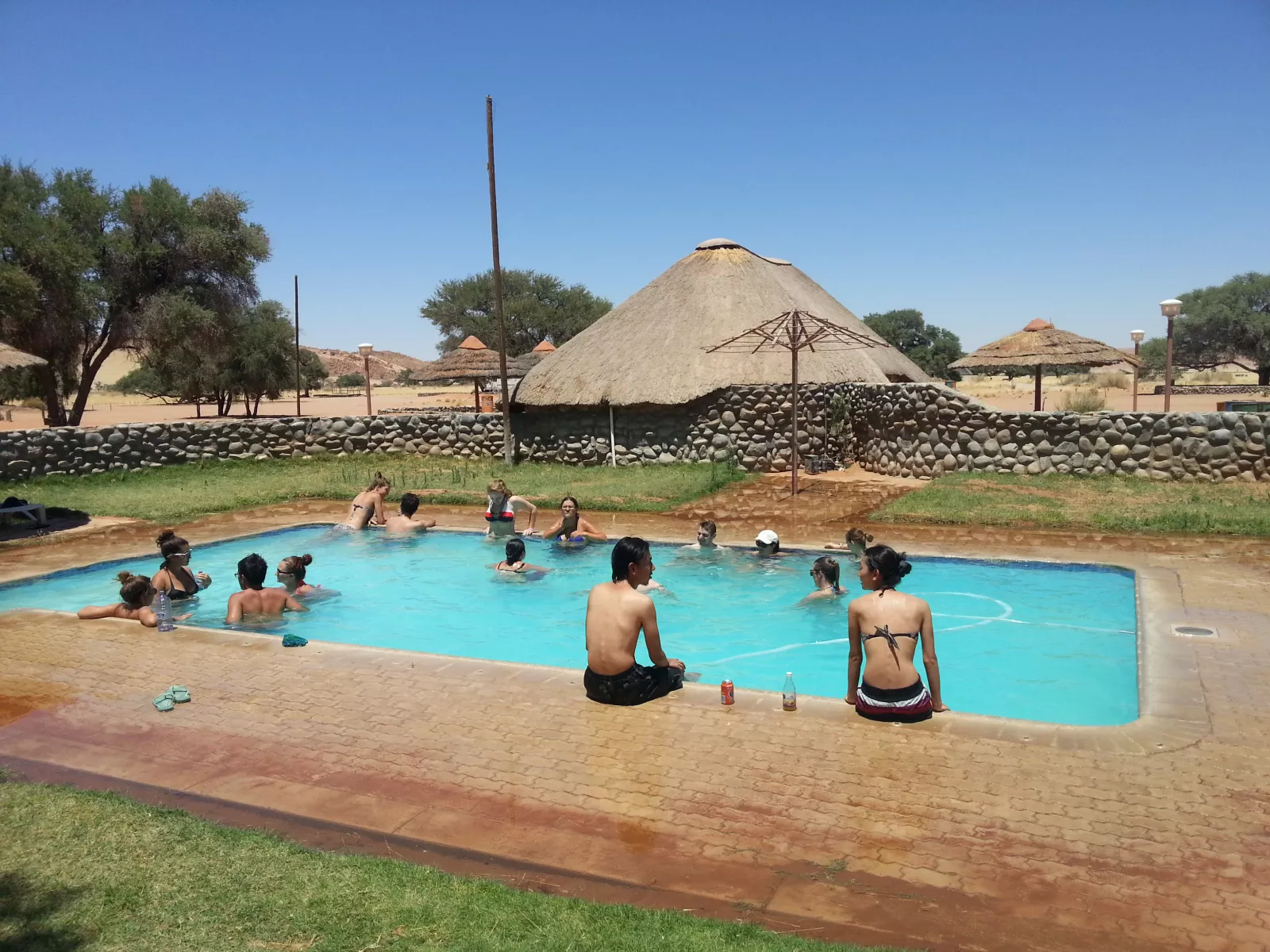 bueno, hemos llegado a un pequeño oasis en el puto medio de la nada, un complejo con luz y con una mini piscina, y me he hecho el español, ni tienda ni naaa, he pillao una cerve y a la pisci, una hora después viene todo el mundo y me dice mi compi que donde estaba, pues en la pisci, no me ves? a mí me da algo en el desierto, 327 grados, momento chulo, desierto, pisci y cervezas…