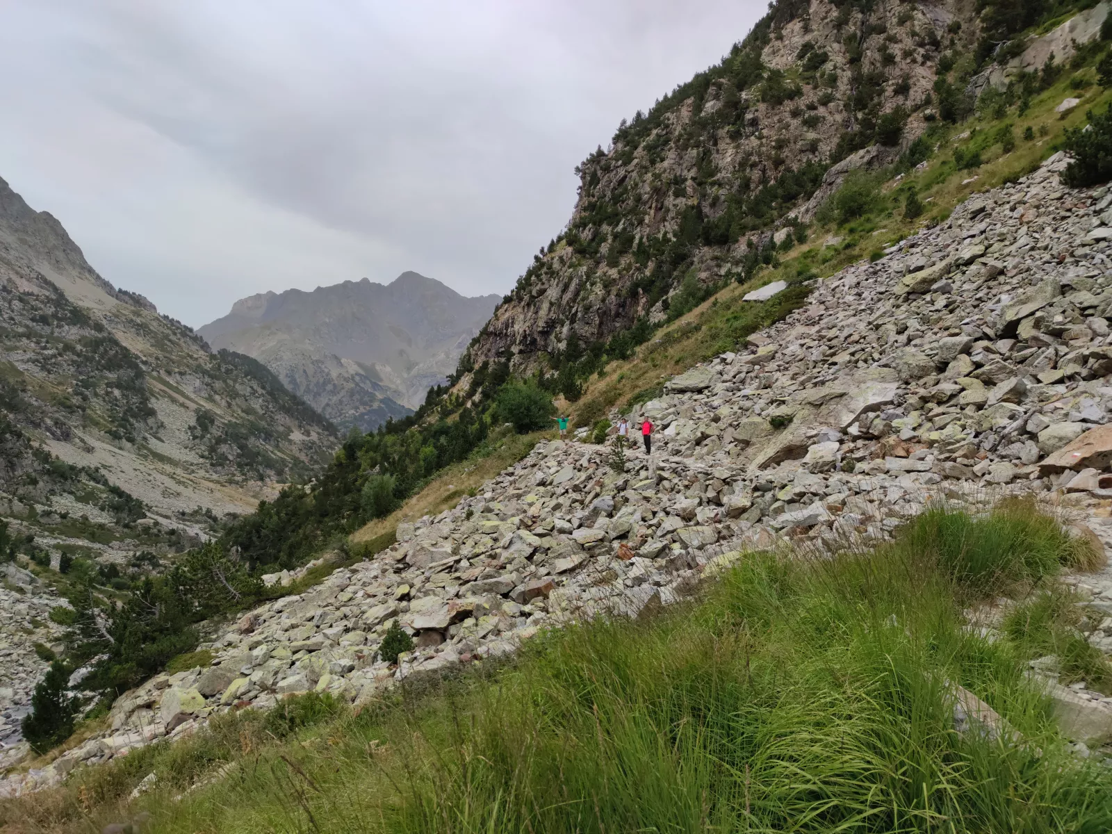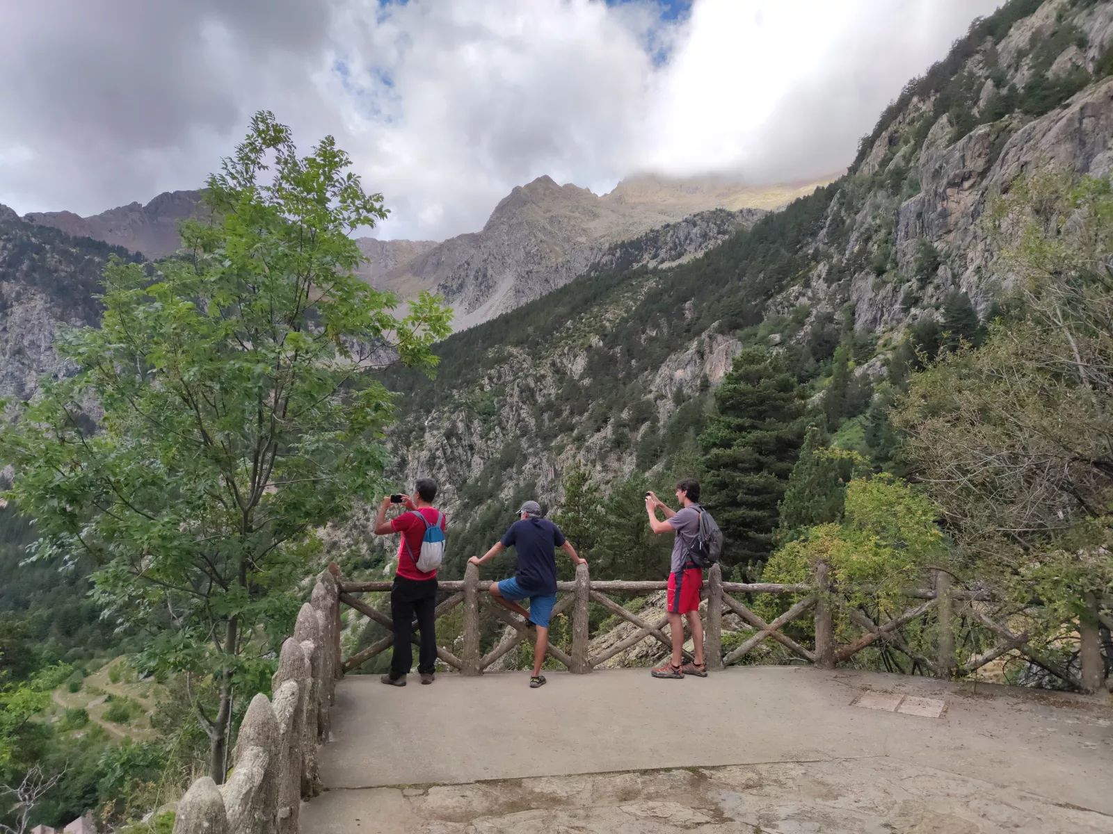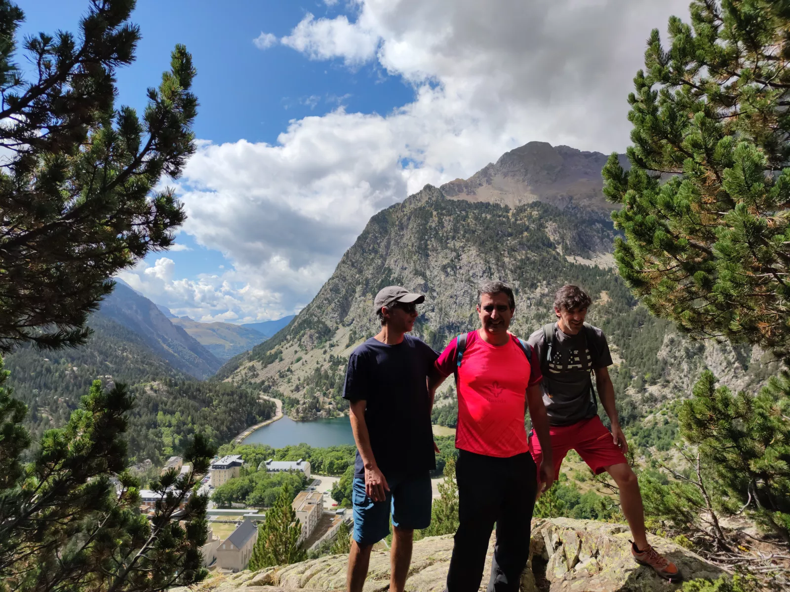 pues en pie, a las 12, es la hora perfecta para ir a patear sin nada preparado, nos vamos hasta Baños de Panticosa, es como Panticosa pero sin casas, tiene un hotel y un balneario y una pista de esquí nórdico, ya vendré algún día con lo que me mola a mí ese deporte, con juanito muleg o como se diga de ídolo (confirmado después de un año, no fui), total, que vemos algunas rutas y tiramos por una que hay justo detrás de un refugio, tenemos ya la cabeza en la cerveza del refugio que en la pateada, pero ya que estamos, pues parriba, y nunca mejor dicho, un kilómetro vertical, sin parar, con una pendiente que te mueres y unos escalones que flipas, muy mal hecho, hasta que llegas a un mirador, yo para descansar, coger aire y empezar a hablar de rajarme, no llevamos ni 15 min y éstos, pues disfrutando, no lo entiendo