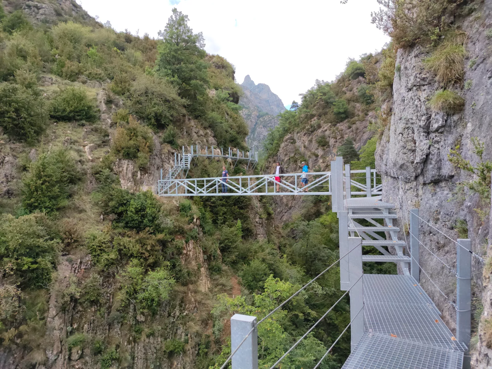al día siguiente, pasado el desayuno sobre las 12, llegó un temido momento para mí, las pasarelas de Panticosa, están justo detrás de casa y ya solo en fotos, me da vértigo, pero como puede ser posible, no lo entiendo y encima voy con gente que escala miles de metros de pared como si nada, solo espero y confío en que a Antonio también le de miedo, se acojone y vuelva conmigo. Ale, sacamos ticket, llegamos a la entrada y para empezar son pasarelas de metal en las que se les ha olvidado tapar los agujeros del suelo, se ve todo, no puedo ser, no he salido y ya estoy temblando, pero qué es esto!, qué miedo, así que no me muevo, espero a que estos lleguen al puente, hago foto y me piro