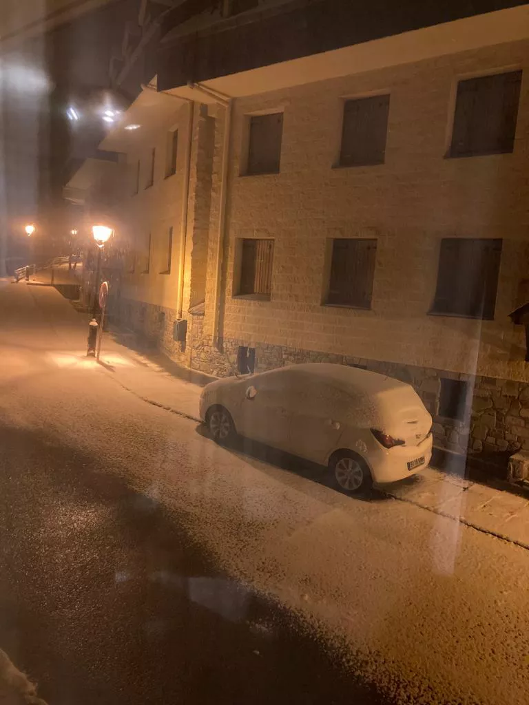 pero ya que estamos aquí, pues vamos a tomar un café al balneario, si es que llegamos con las piernas intactas, madre mía que resbalones, que rotura de ligamentos y de todo, se veía, pero no, llegamos a la cafetería y nos quedamos ahí un buen rato, muchísimo mientras veíamos como no dejaba de caer, Antonio decía que no bajamos, que el no conducía con esas condiciones, carretera helada, pero nosotros le animábamos porque seguro que sería divertido, total, que volvemos hasta el coche y vemos justo una máquina quitanieves que salía justo en ese momento y Antonio decide seguirla para ir más seguros, hasta que en la primera curva nos dejo atrás, una quitanieves! que va a 4 por hora!! y así pasó, en la segunda curva patinazo del coche, yo meao y el pobre antonio, pues con nuestras vidas en sus manos, pero al final es un máquina, no tanto como la quitanieves, pero 3 patinazos más 7 horas después, estábamos en Panticosa con el susto en el cuerpo, lógico que acabase así