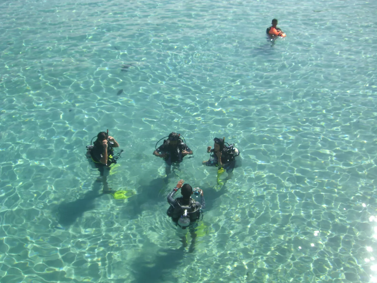 teníamos que ir a una playa buceando y allí nos recogía la barca y joder, qué susto me llevé, otra vez, ya justo llegando a la playa, que casi ni cubría, veo los 4 peces vivos más grandes que he visto en mi vida, me quedé paralizado y busqué ayuda pero todo el mundo estaba lejos, veo como viene uno haciendo el gesto de que te voy a comer, moviendo la boca así como hacen los peces, a ver quién tiene cojones a explicarlo, y hago el gesto de ir a por él y cuando se gira, si, muy grande pero media dos milímetros de ancho el puto mierda, pero dónde vas? normal que se quede por la playa porque si se mete un poco dentro, no dura ni un segundo, así que pasé por medio de los peces y la verdad que yo seguía acojonad,o pero por fin llegue a la playa y darme unos chapuzones