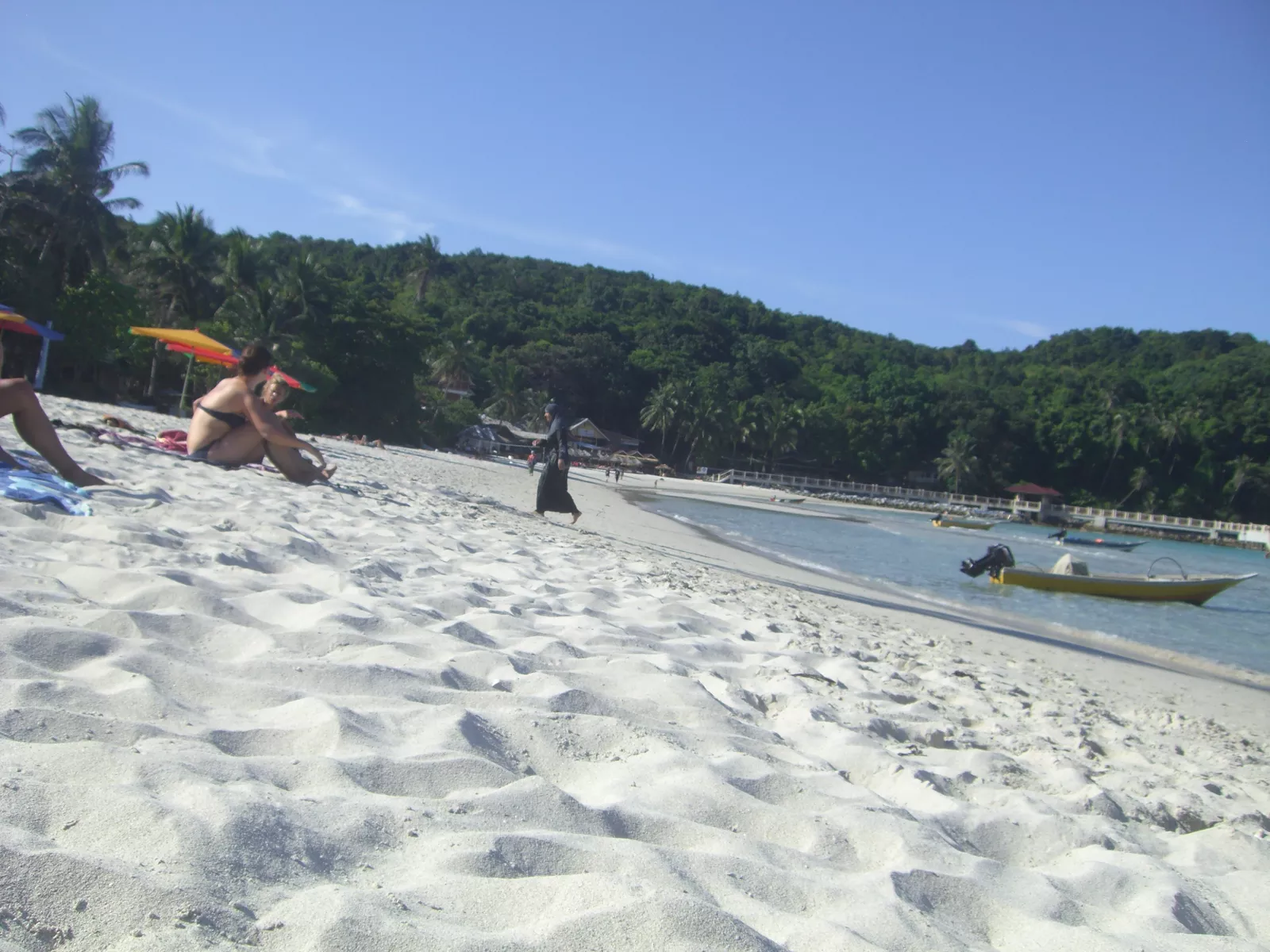 Otro día que duermo poco por culpa de mi atleti, pero que voy a decir mientras siga ganando… Y a las 7:20, arriba que viene una mini van de esas para llevarme a kuala besut, en el hotel me dicen que son 6 horas, mucho camino de montaña y es verdad, pero el tío que nos ha tocado, porque iba con tres francesas, ayyyy mi francés, qué pena… parecía que todavía seguía corriendo la carrera de F1 de ayer, en 4 horas y poquito estábamos allí, qué velocidad! muuu bien, no me ha importado porque era para ir a la playa otra vez,